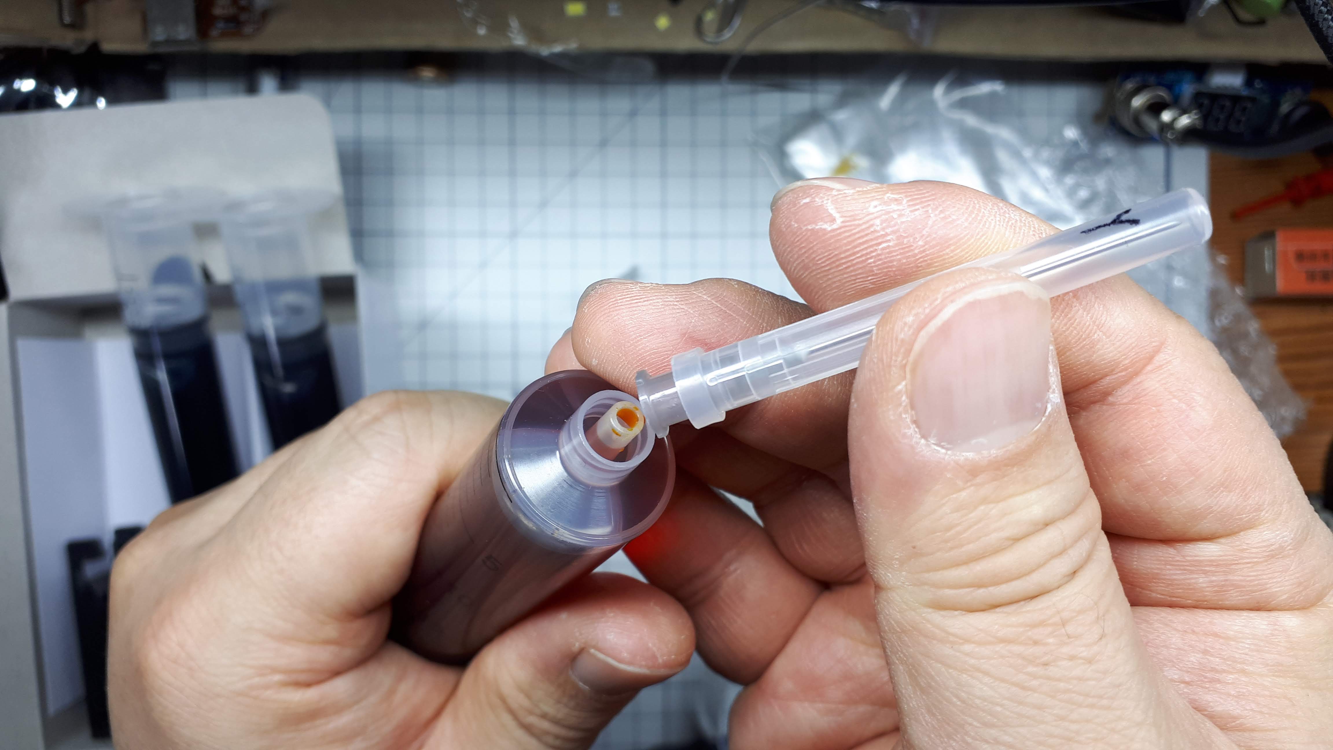 잉크 주사기에 바늘을 결합한 사진입니다
