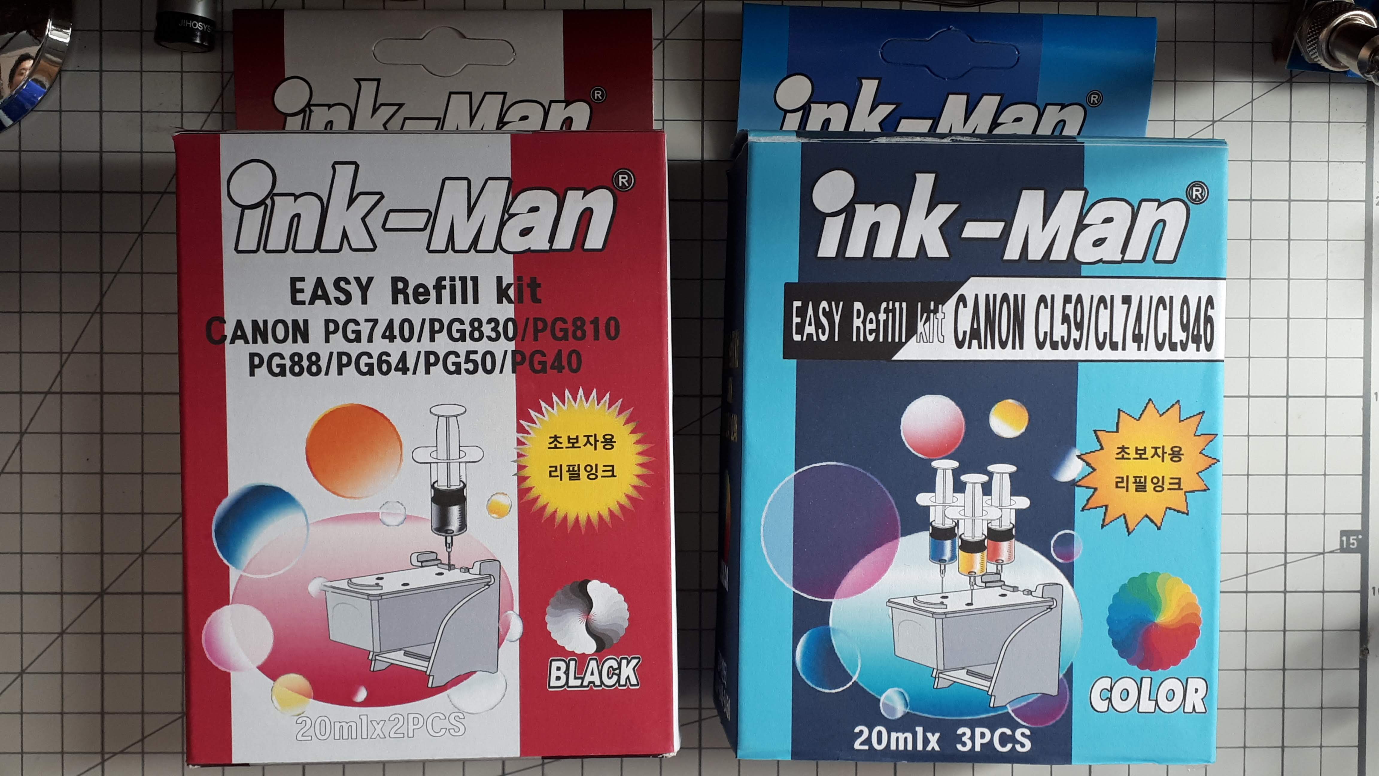 칼라 잉크 리필을 위해 칼라 리필키트를 열어본 사진입니다