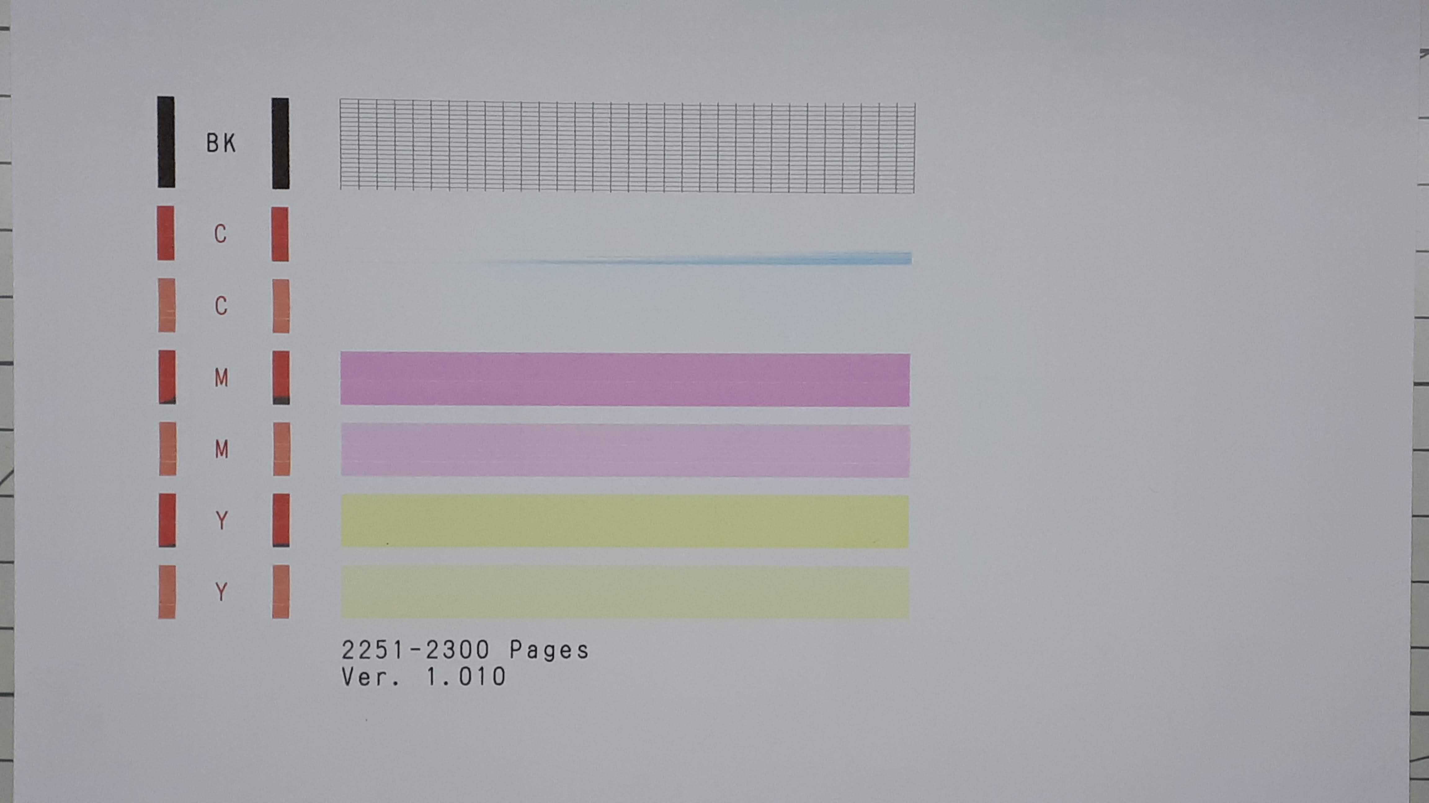청소 후에도 C 표시의 Blue 는 전혀 출력되지 않아서