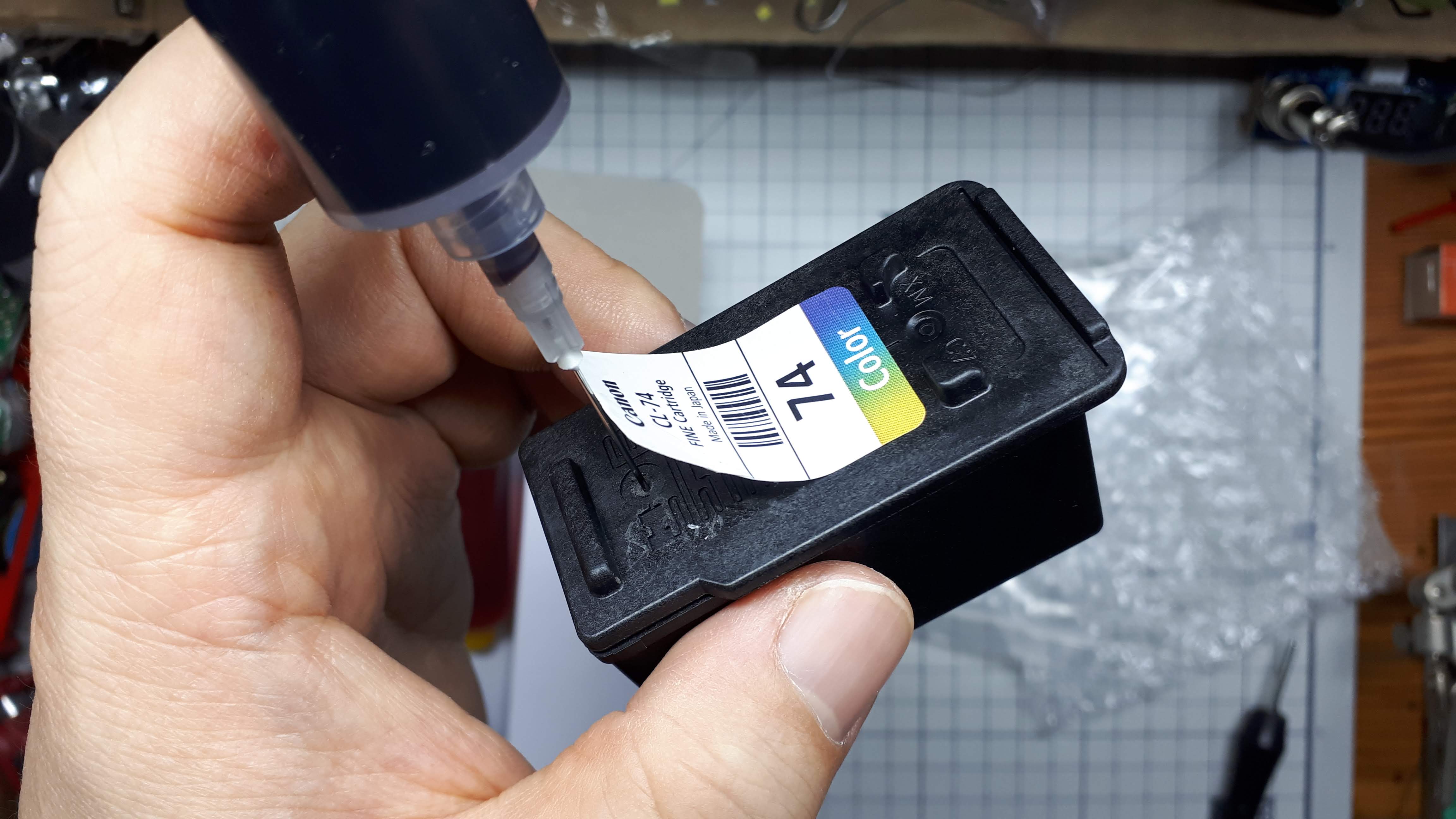 3가지 색의 잉크를 해당하는 공기구멍을 통해 주입후에는