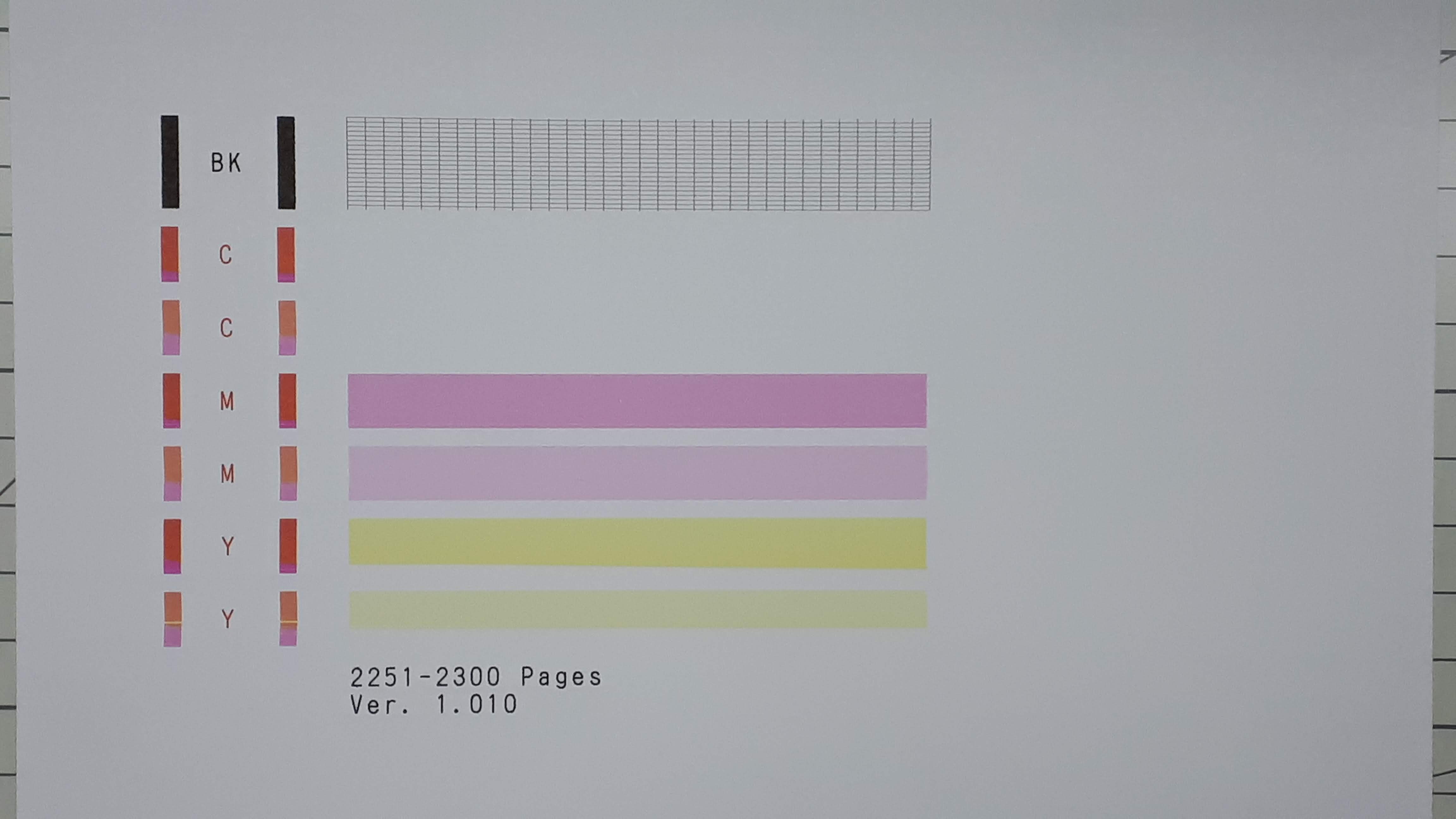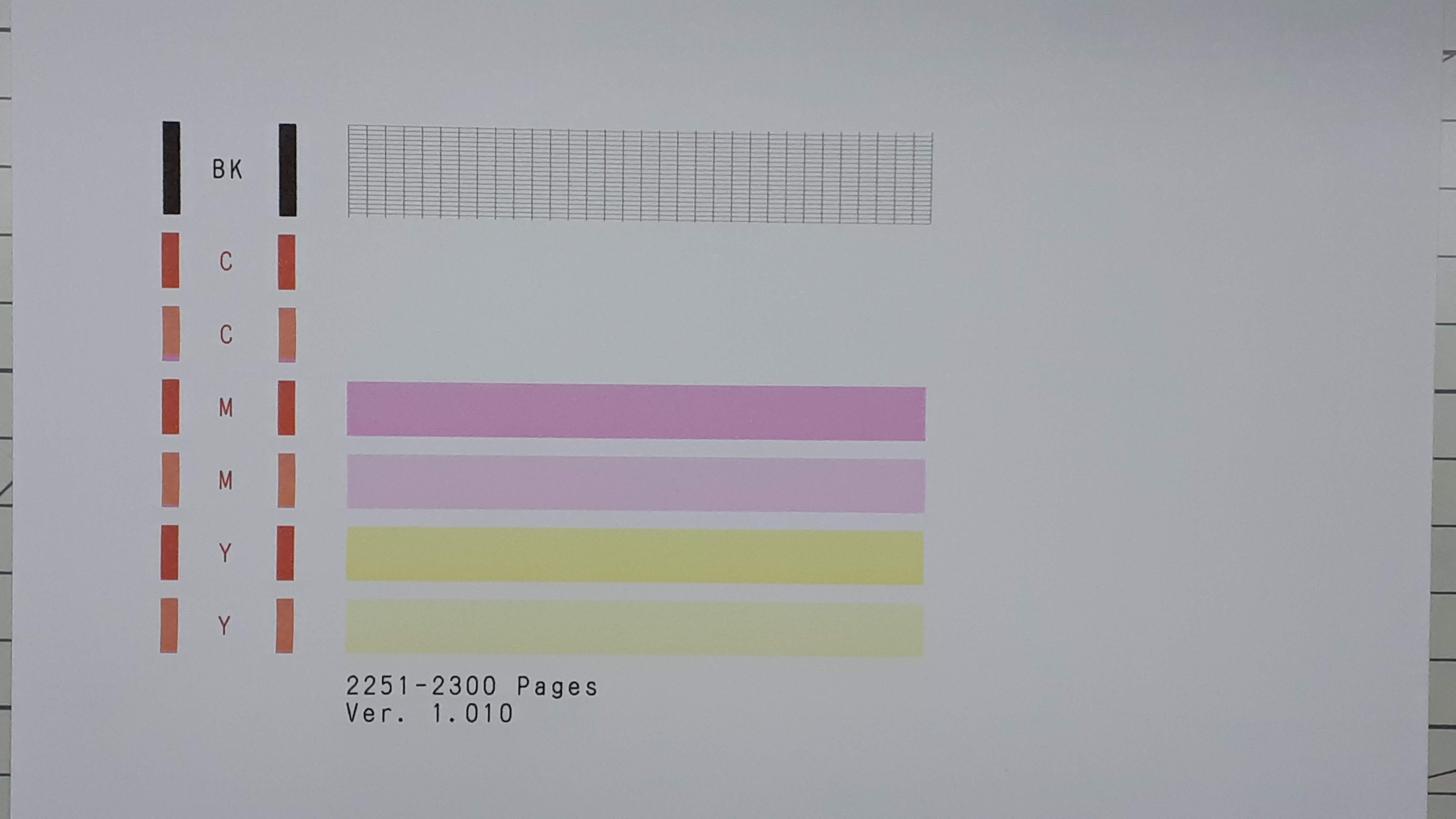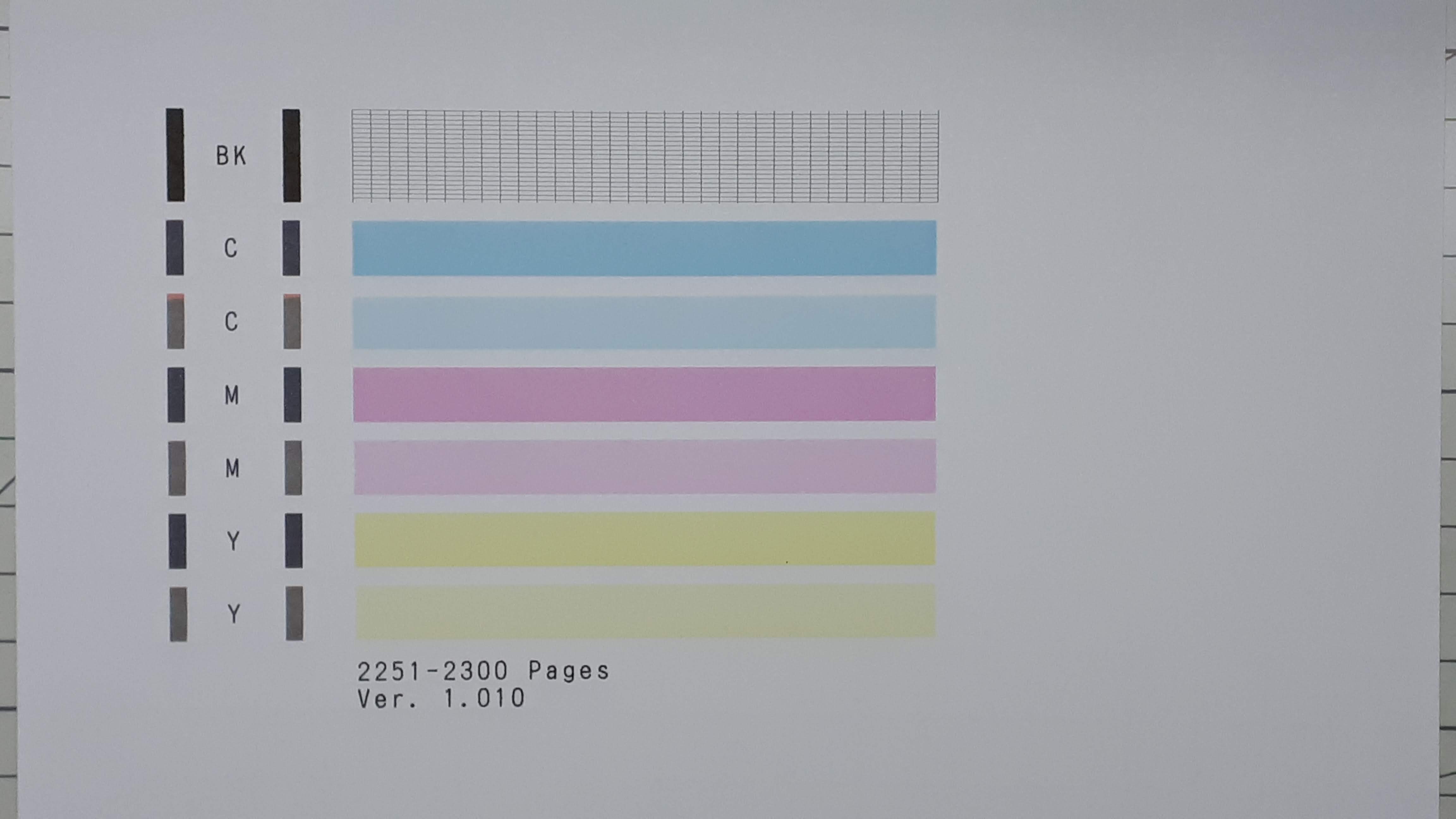 아래 사진은 리필전에 출력한 테스트 페이지의 사진입니다