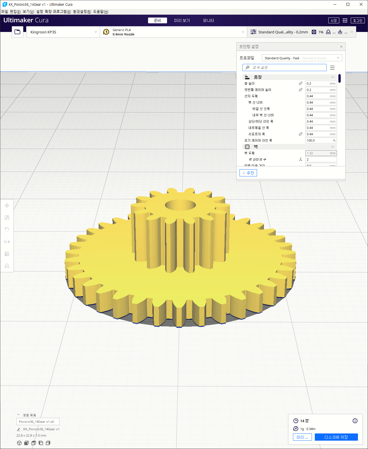 기어의 중앙 구멍의 치수가 3mm 라 정확하게 입력하고 출력했는데