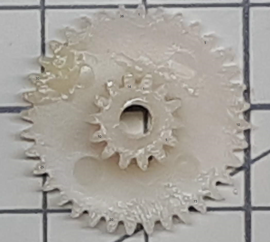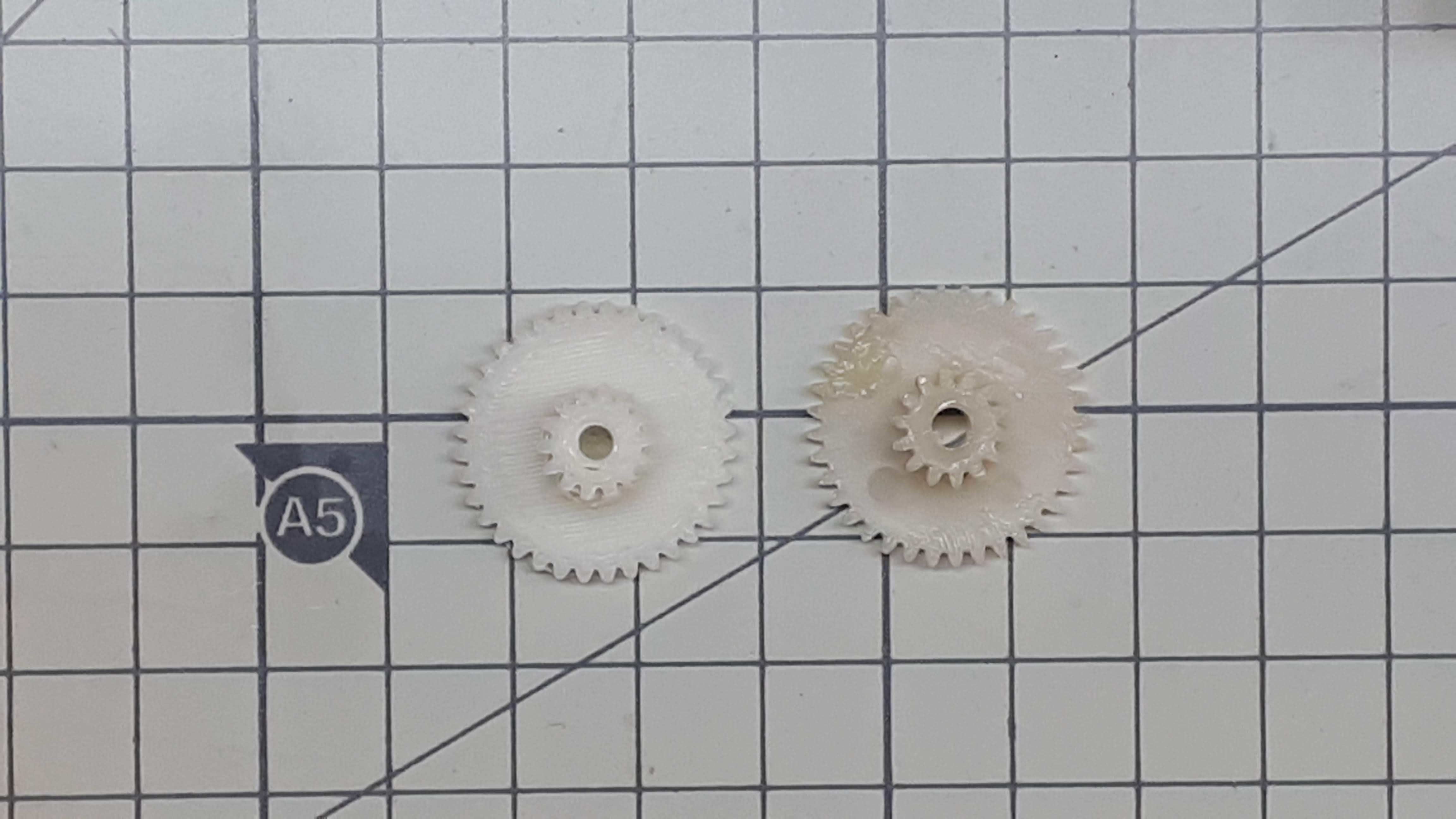 중간에 사용되는 큰 기어가 부서져서 없는 상태로 3D 프린터로 출력하여 수리해야 합니다