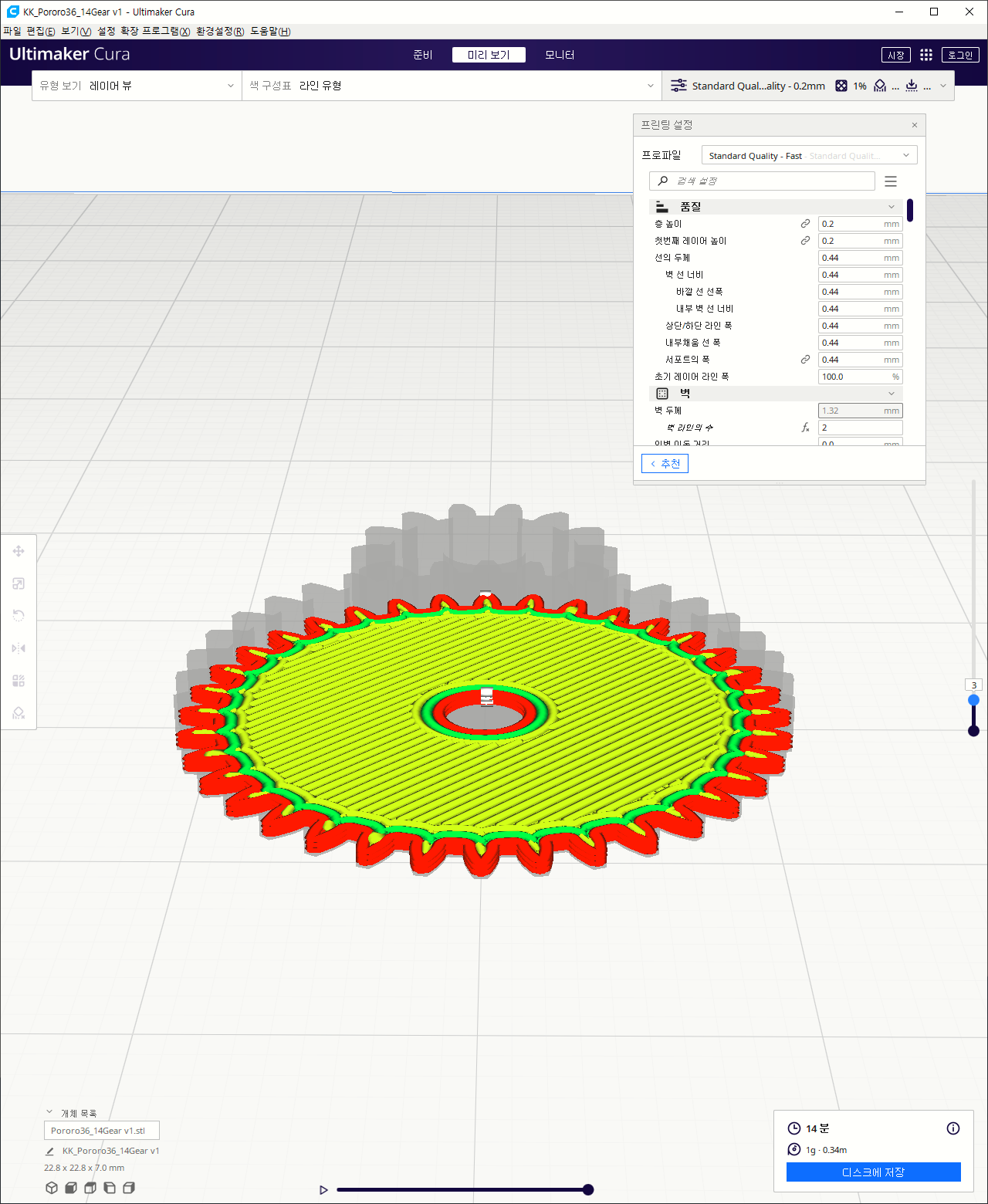 바닥면은 큰 기어와 작은 기어가 중첩된 상태이긴 하지만 STL로 저장하고