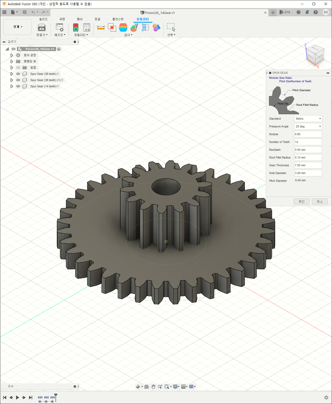 Autodesk사의 Fusion 360을 사용하면 기어 모델을 매우 쉽게 그릴 수 있습니다