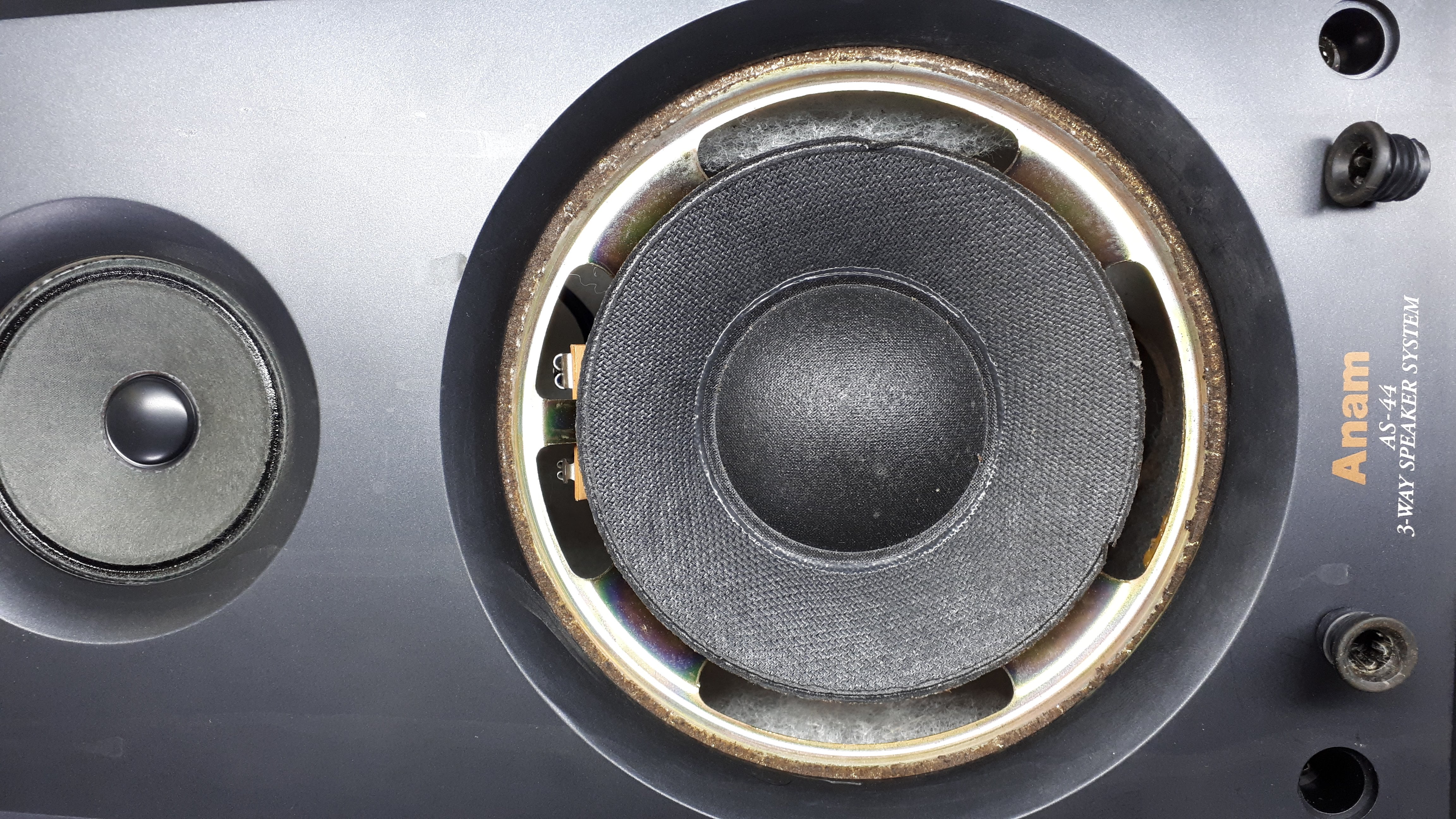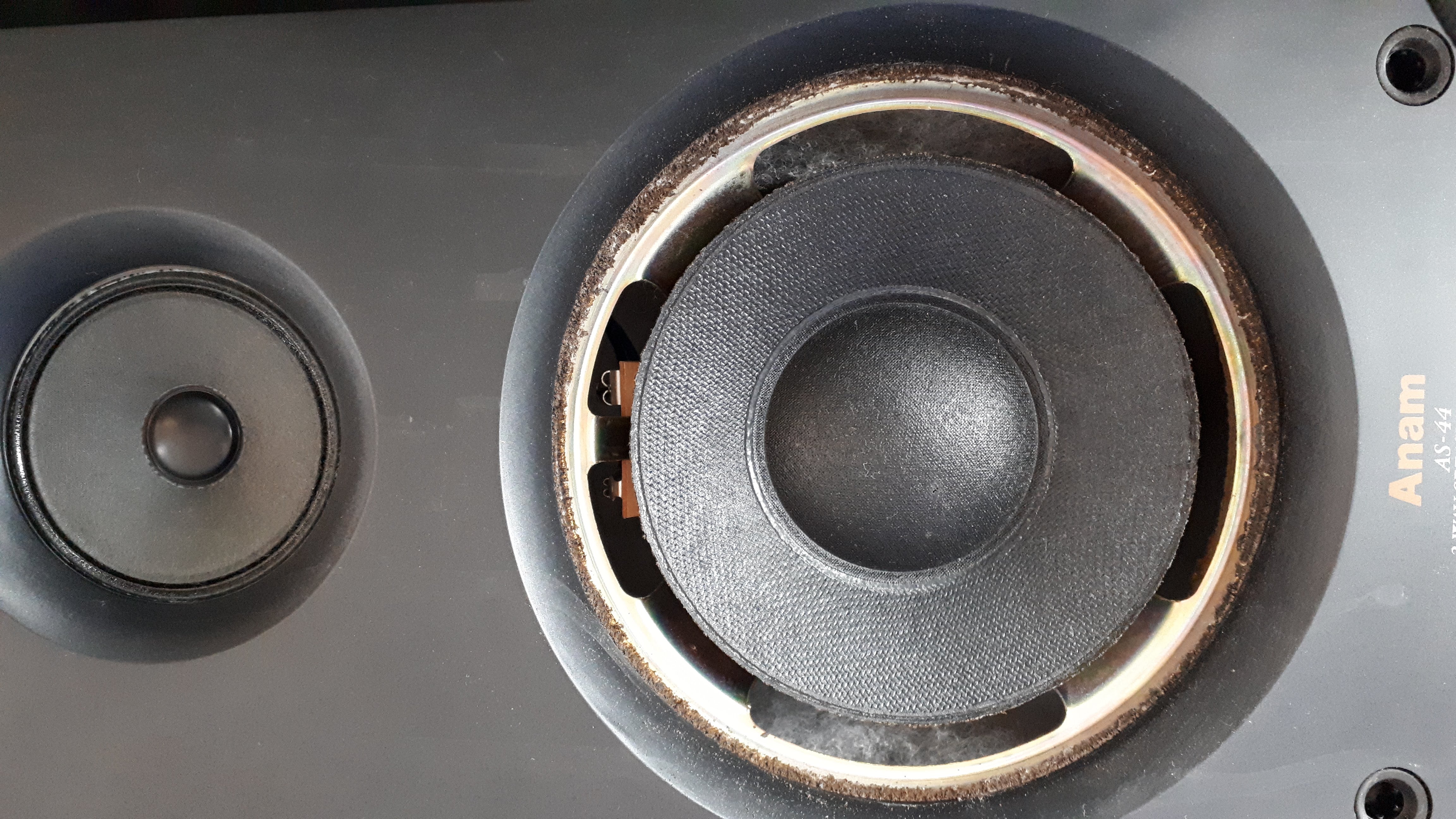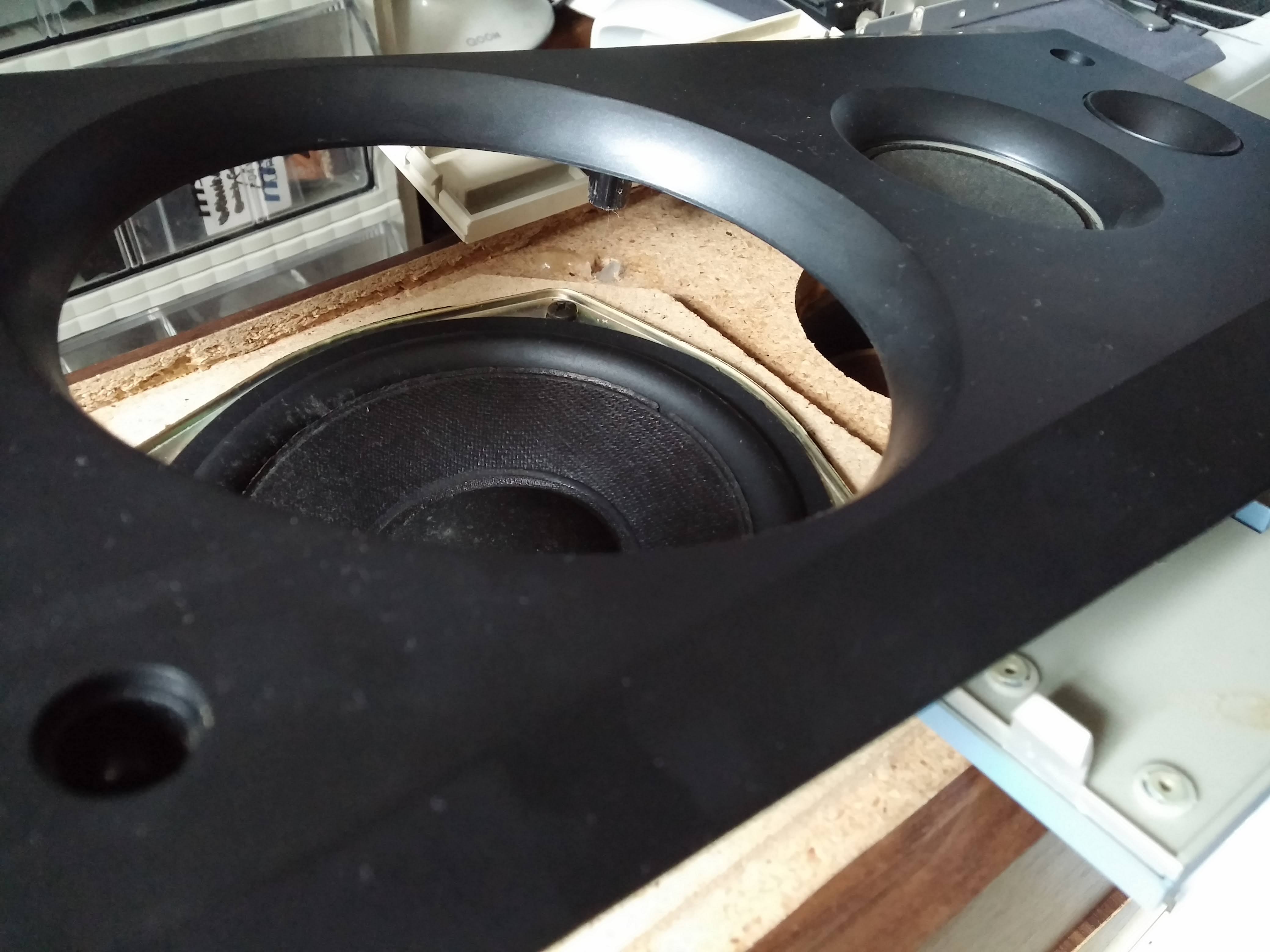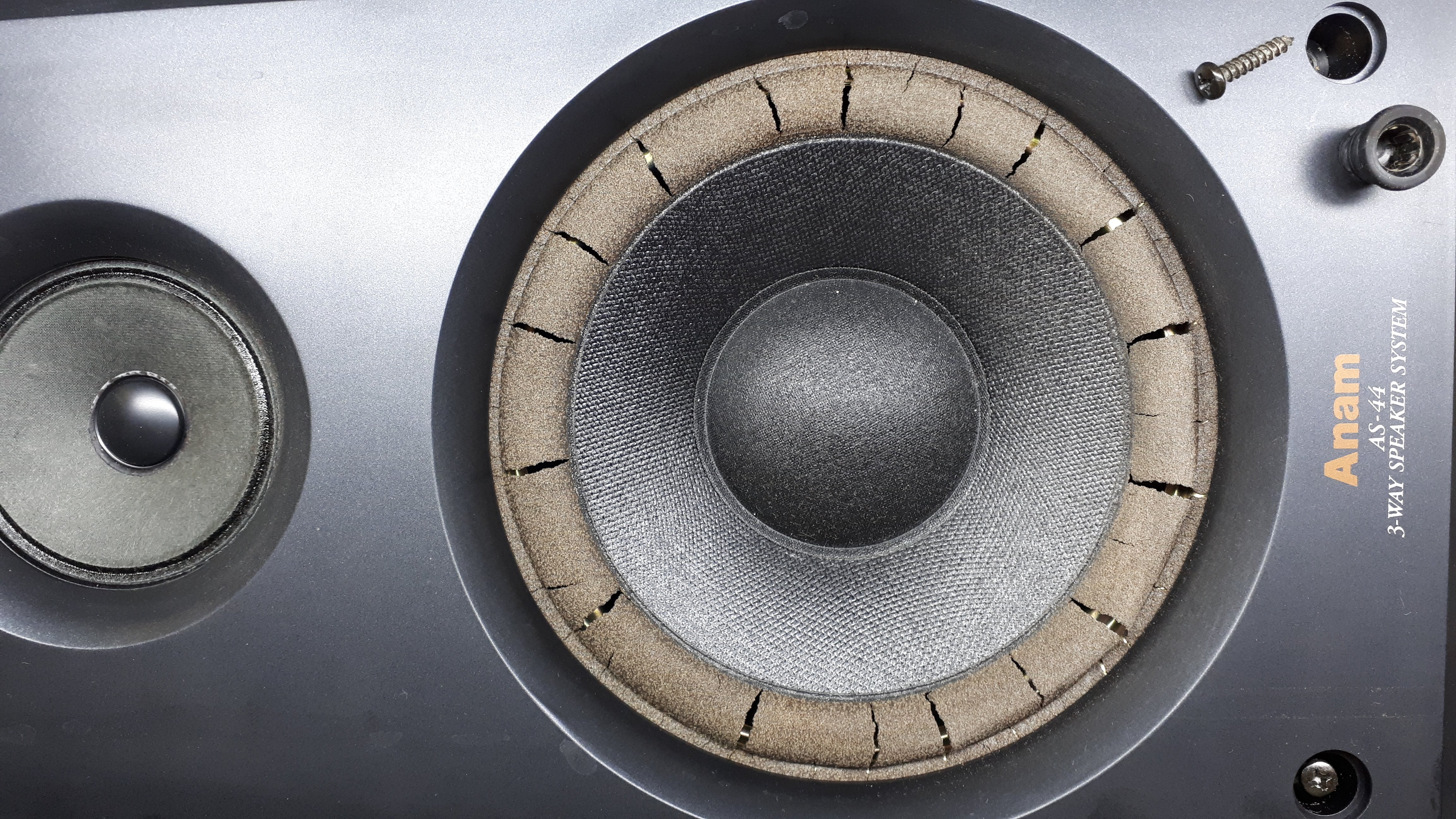 하지만 오래된 스피커라 아래 사진과 같이 우퍼유닛의 엣지가 경화되어 갈라져서
