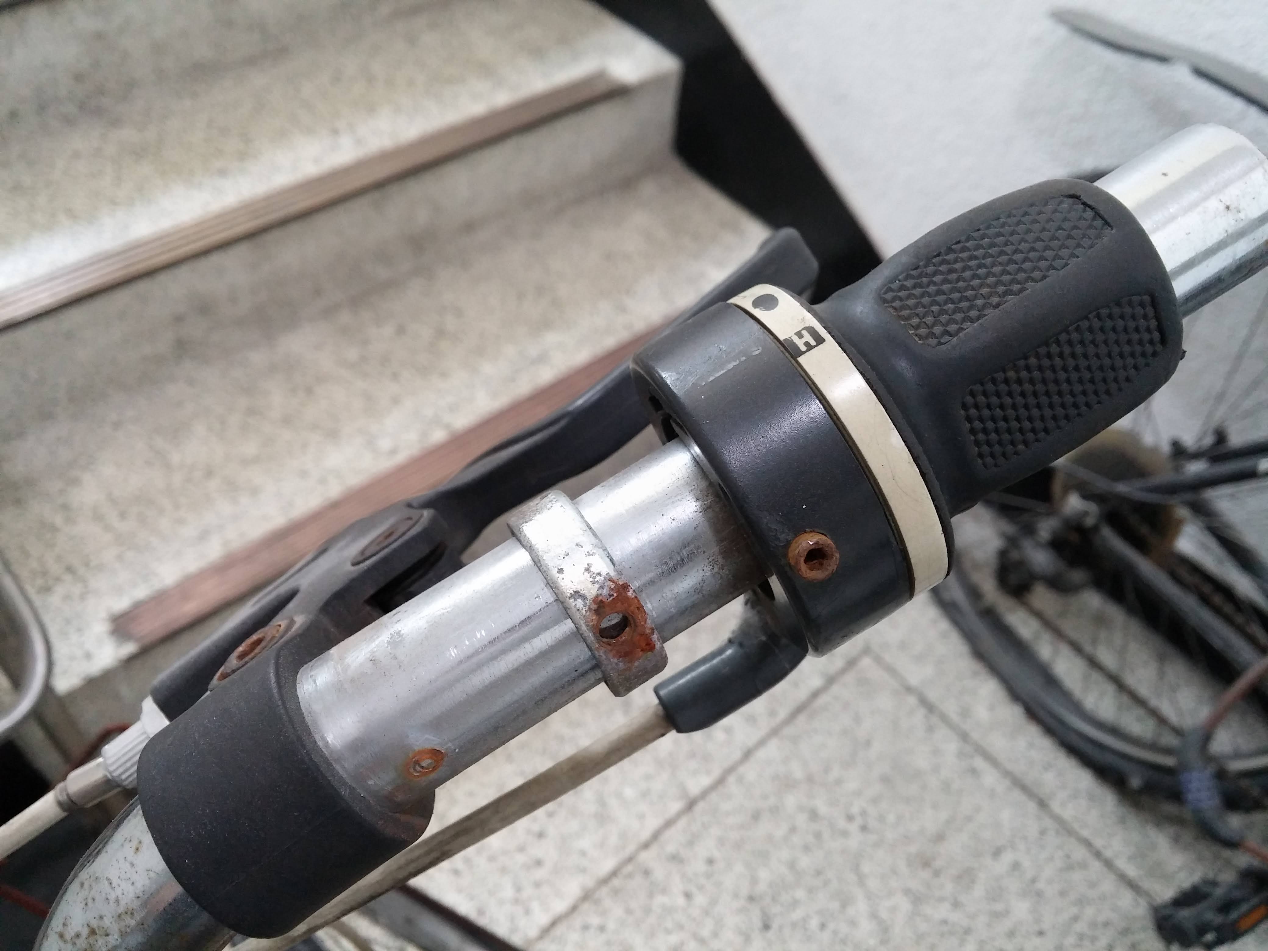 이제 고장난 기어레버 분리를 위해 자전거 핸들 손잡이를 분리할 차례입니다