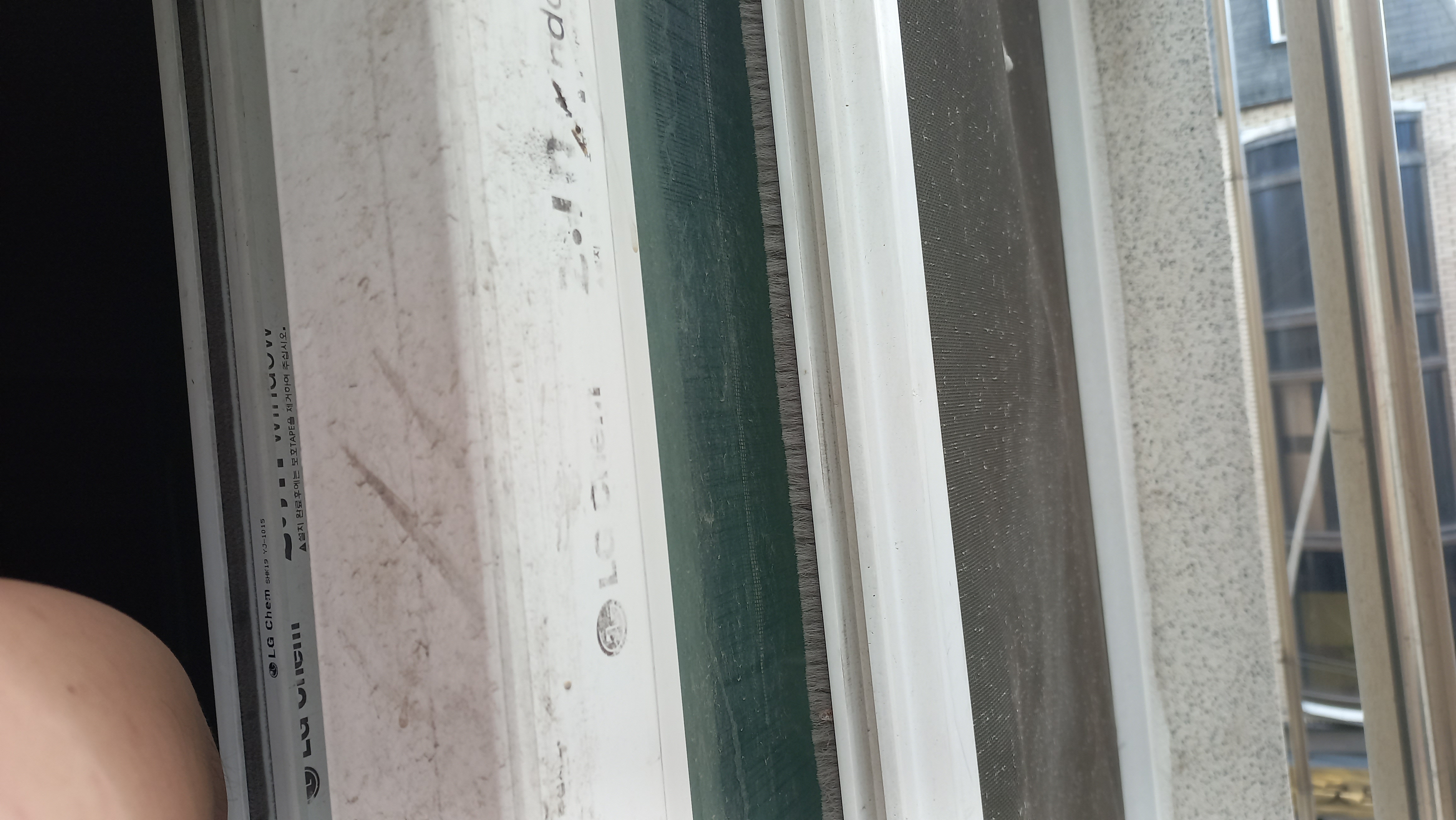 작업후에 방충망과 창문틈을 찍은 사진입니다