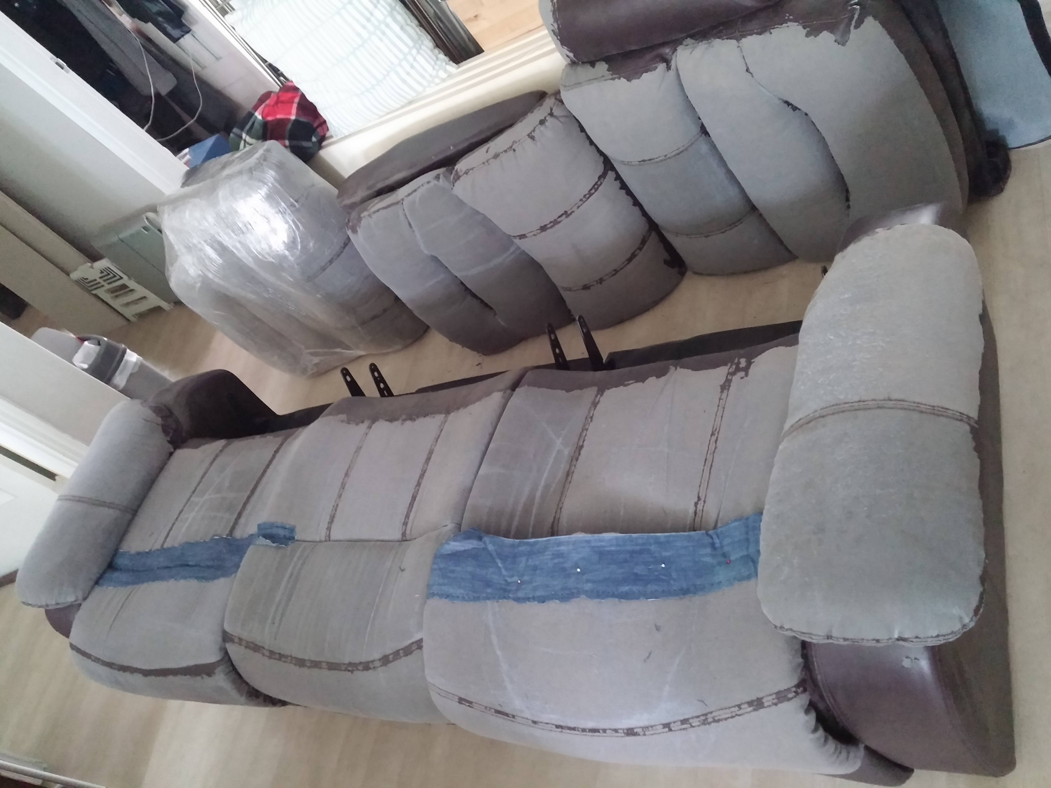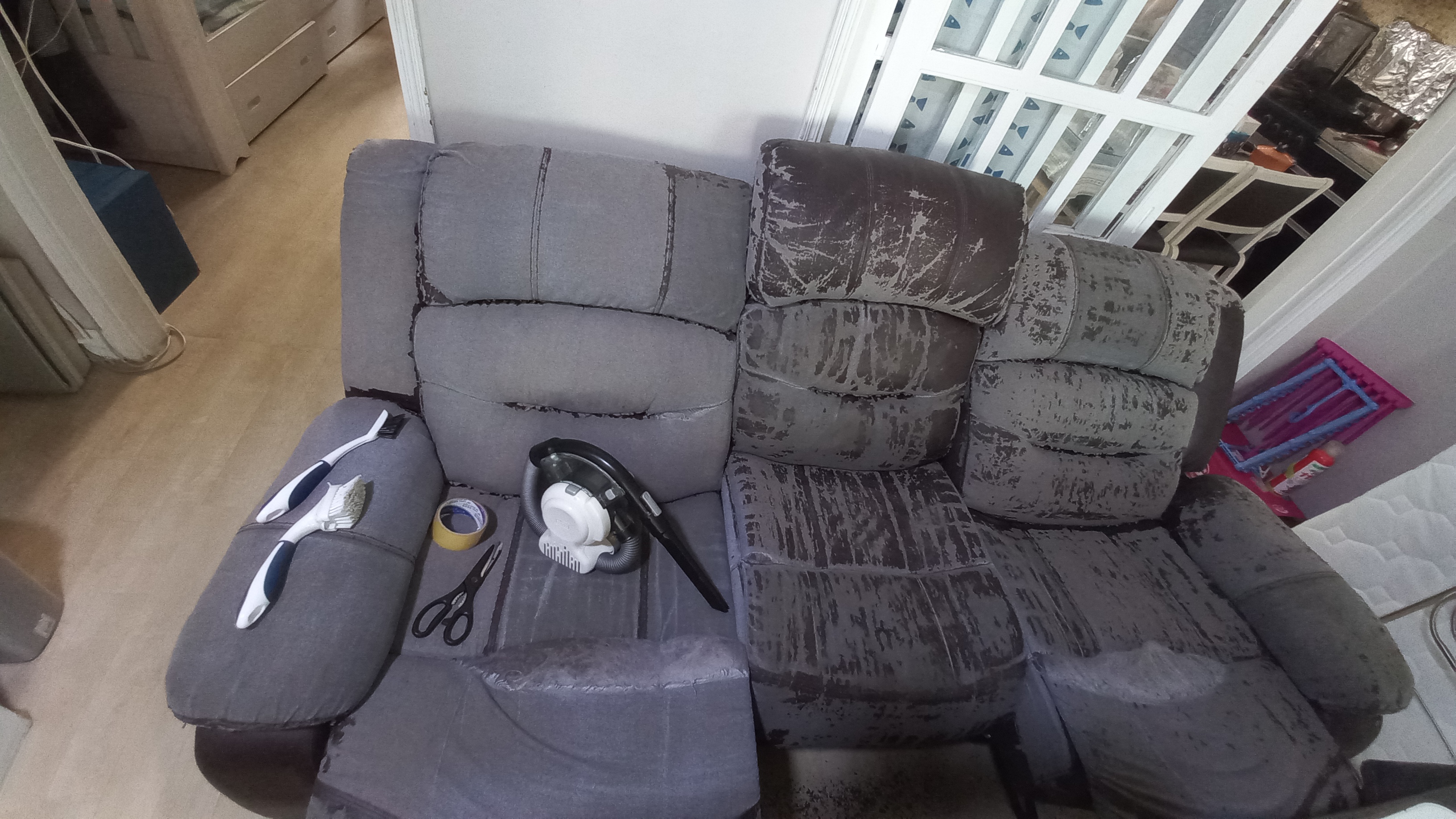 하지만 위 사진의 상태에서도 소파를 그대로 사용하기에는 좋지 않습니다