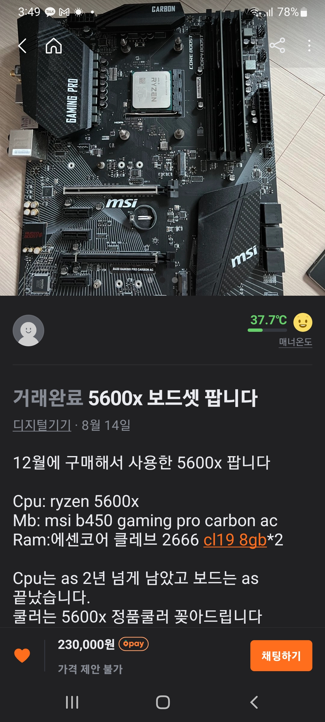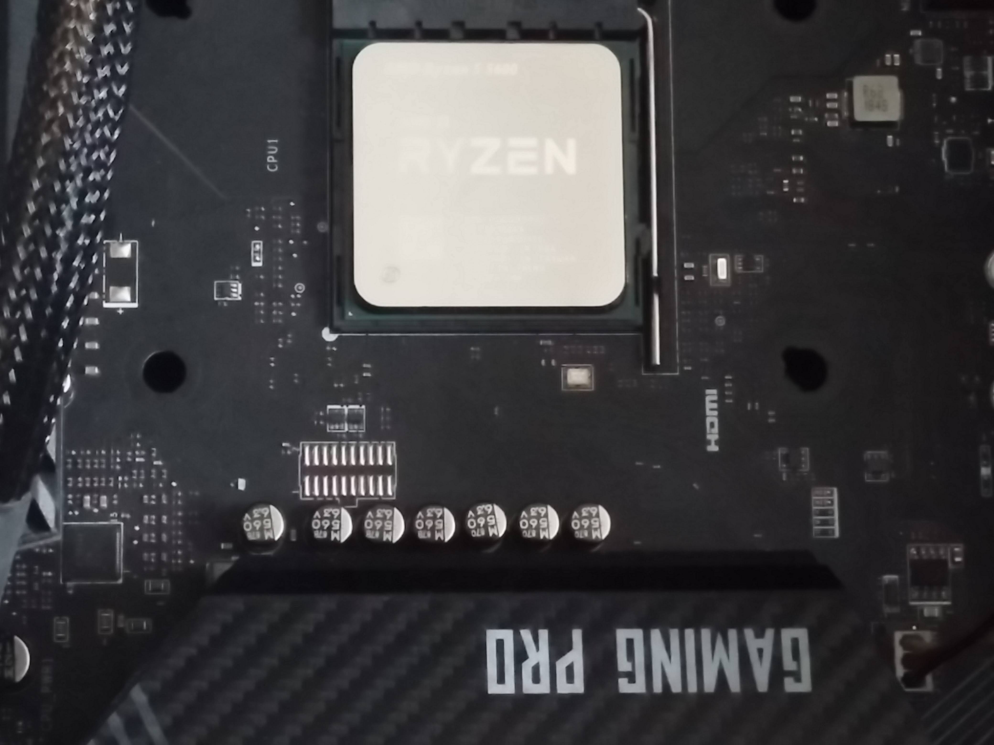 아래 사진과 같이 MSI B450 Gaming pro carboa ac 보드에 Ryzen5 5600을 장착합니다