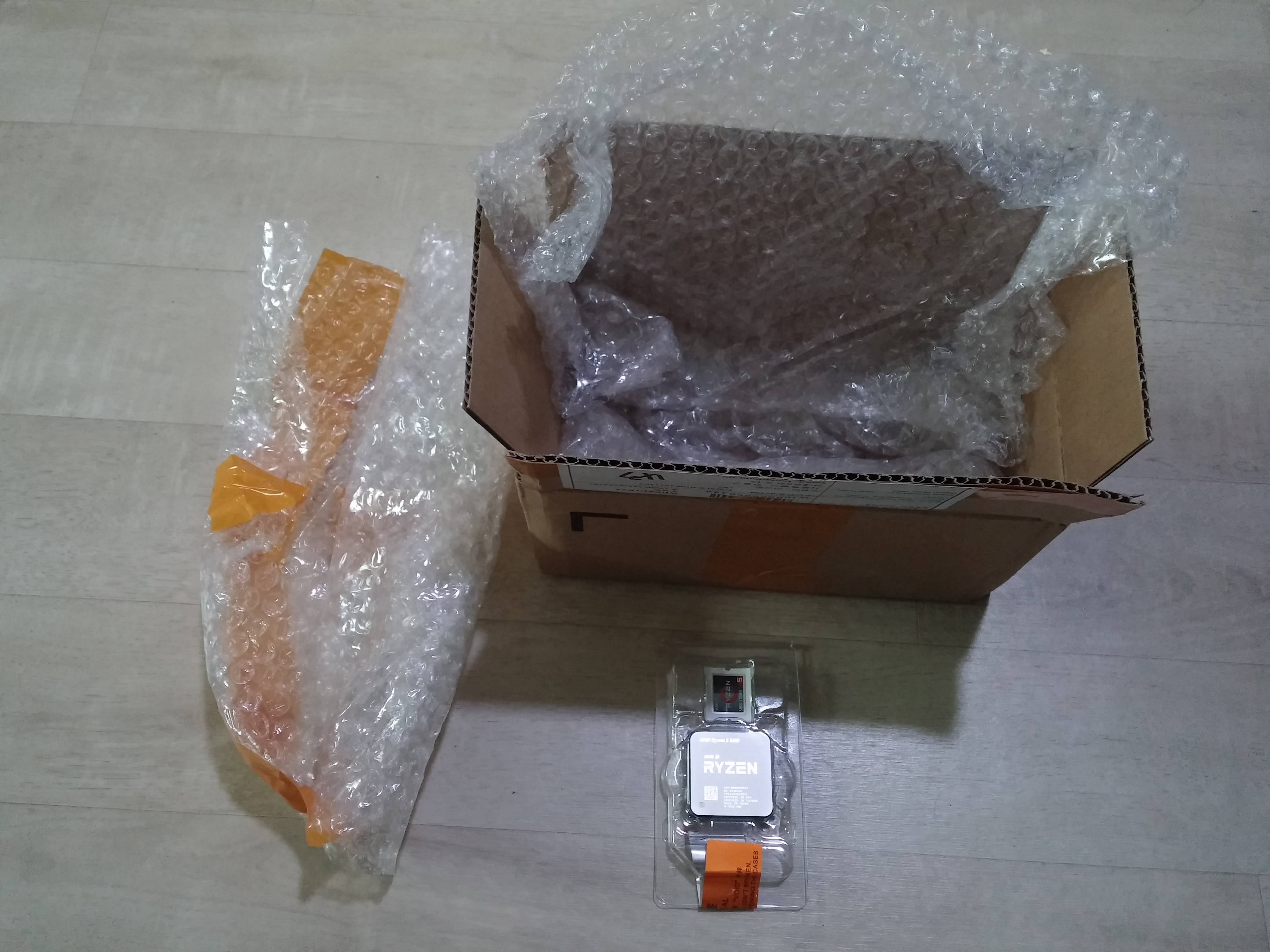 상자의 중앙에 CPU가 위치하여 안전하게 배송하였네요