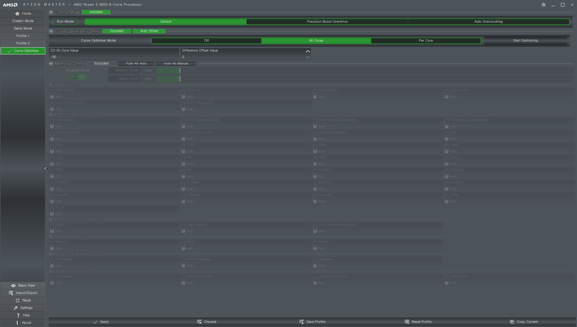 AMD Ryzen Master의 Curve Optimizer를 All core를 선택하여 구동해 봅니다