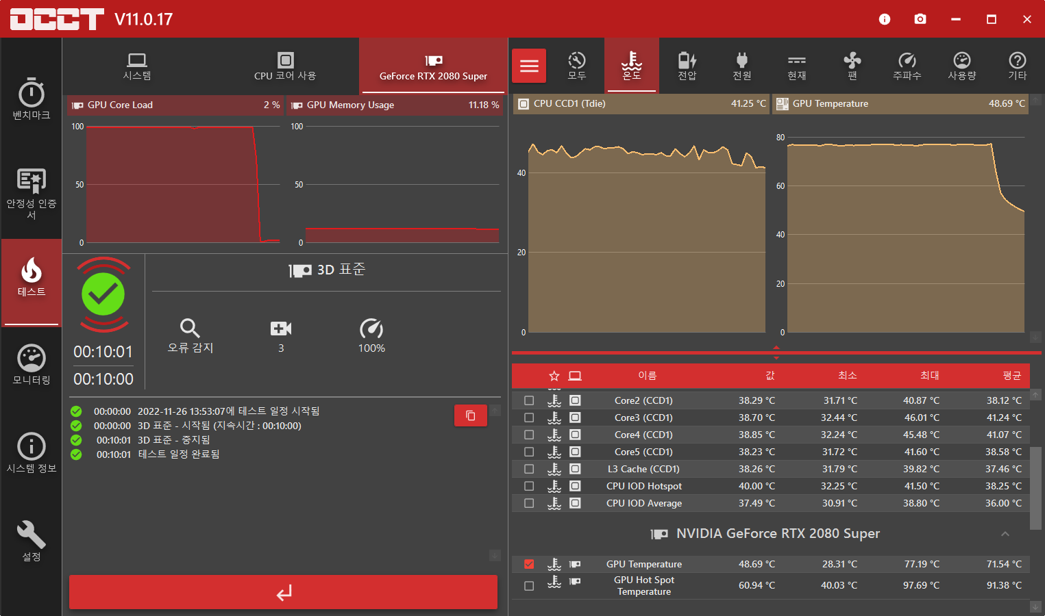 혹시 숨어있는 오류가 있는지 검사를 위해 OCCT의 3D 항목을 10분만 돌려봅니다