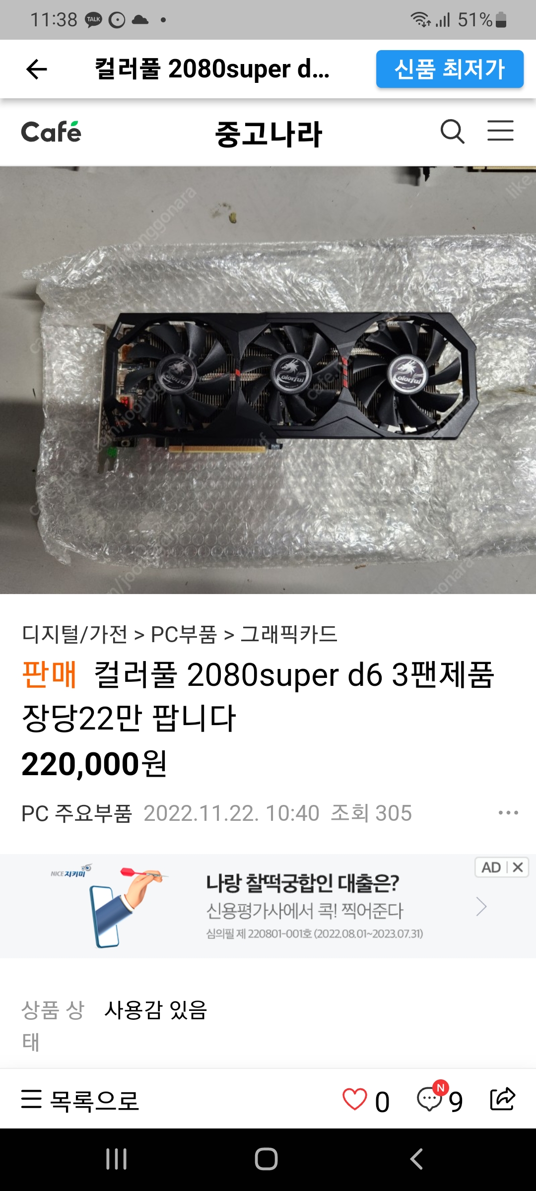 마침 아래와 같이 22만원에 RTX2080 Super Gaming GT D6를 판매하시면서