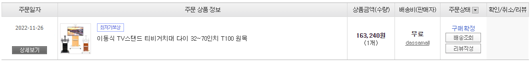 그 중 T100 원목모델을 선택하여 아래와 같이 163,240원에 구입하였습니다