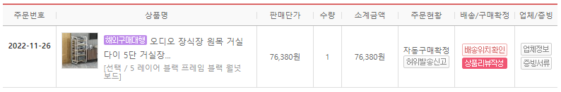 5단 오디오장을 아래의 해외구매대행업체에서 76,380원에 구입하였습니다
