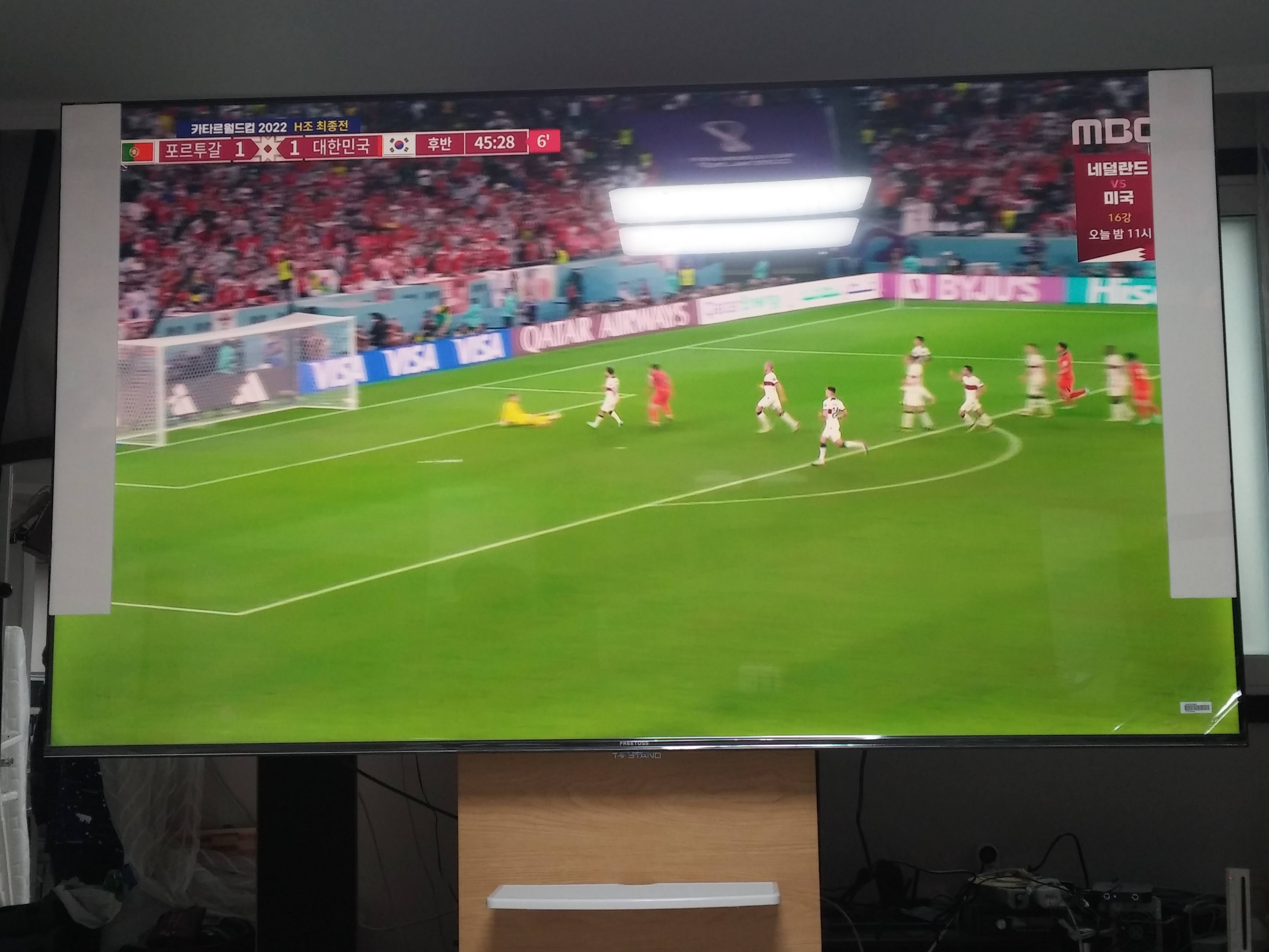 카타르 월드컵 한국 vs 포루투갈전이 끝난 토요일 아침에 TV가 배송되었습니다