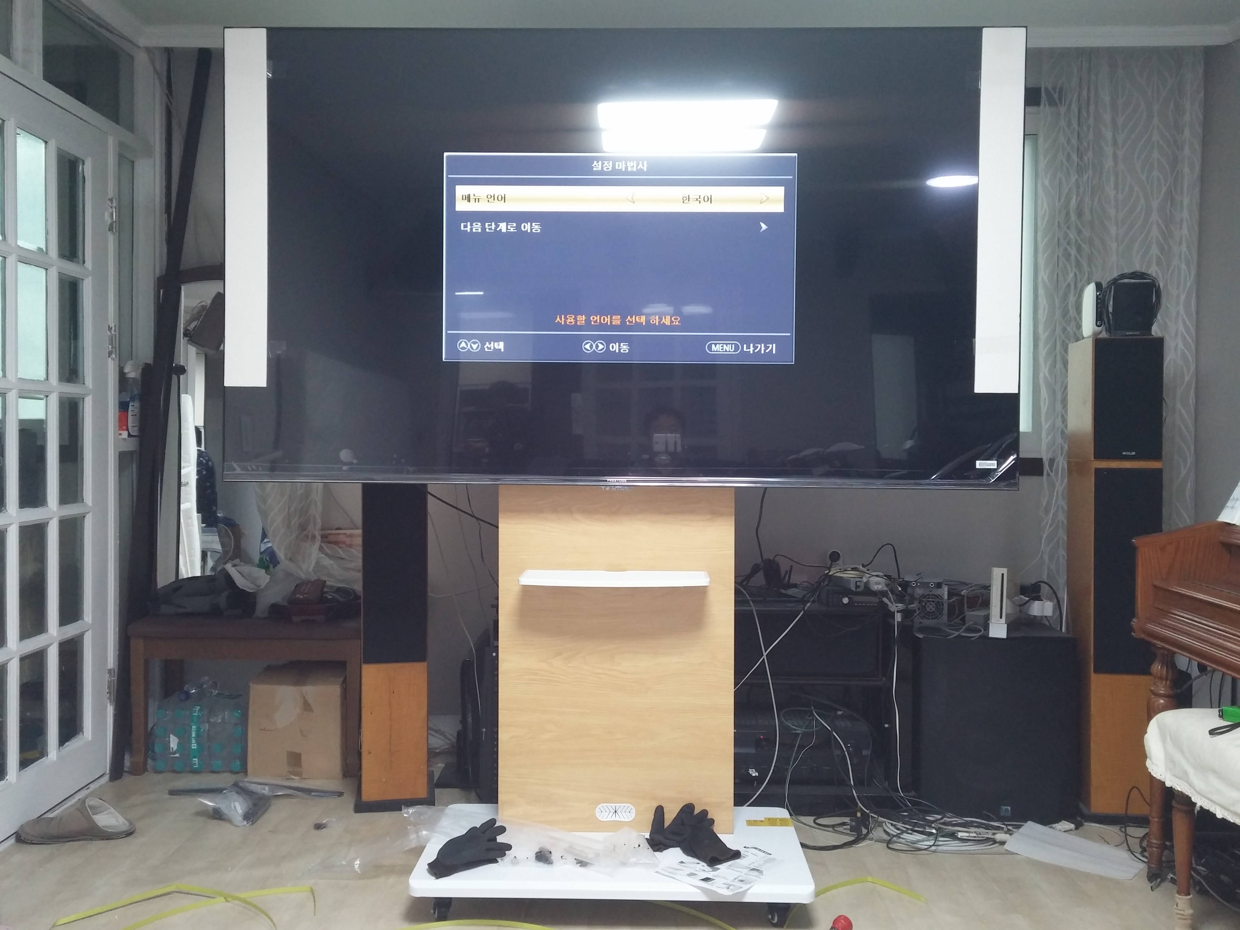 다행히 이동식 TV거치대가 먼저 도착하여 조립해 놓았고