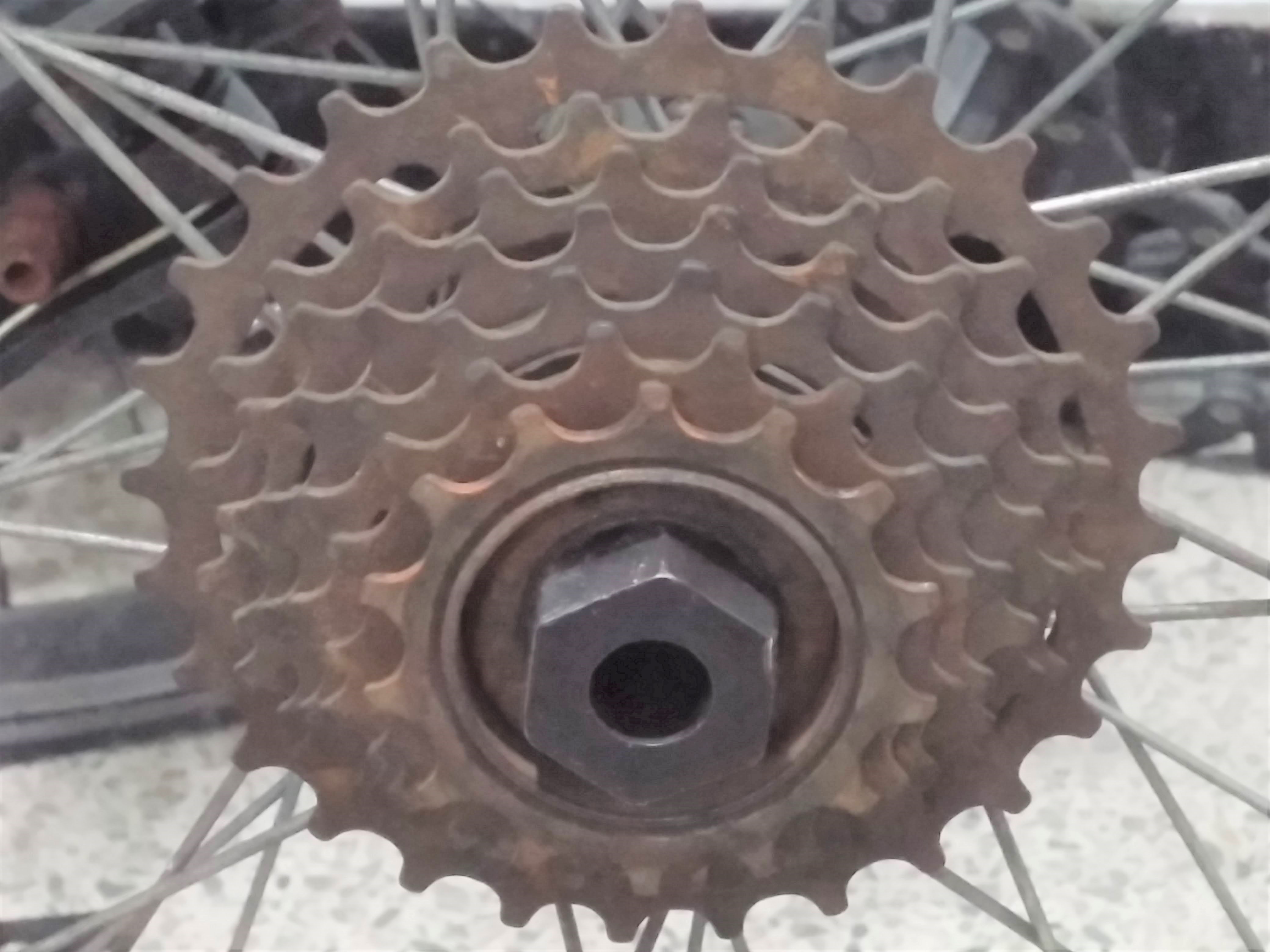 아래 사진과 같이 프리휠(스프라켓) 안쪽에 위치한 바퀴 베어링에