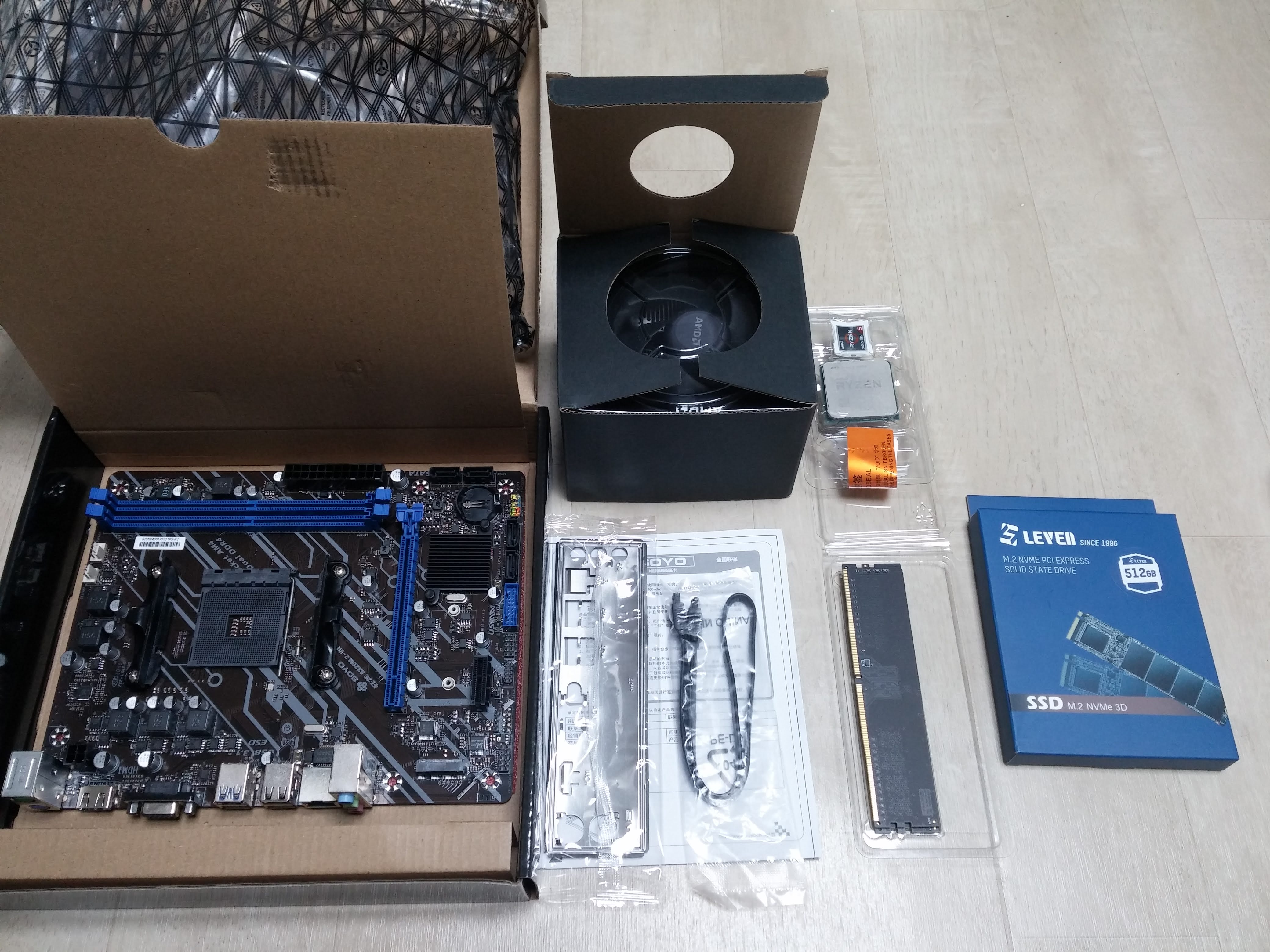 오늘 조립할 CPU, CPU 쿨러, RAM, M.2 NVME SSD 입니다