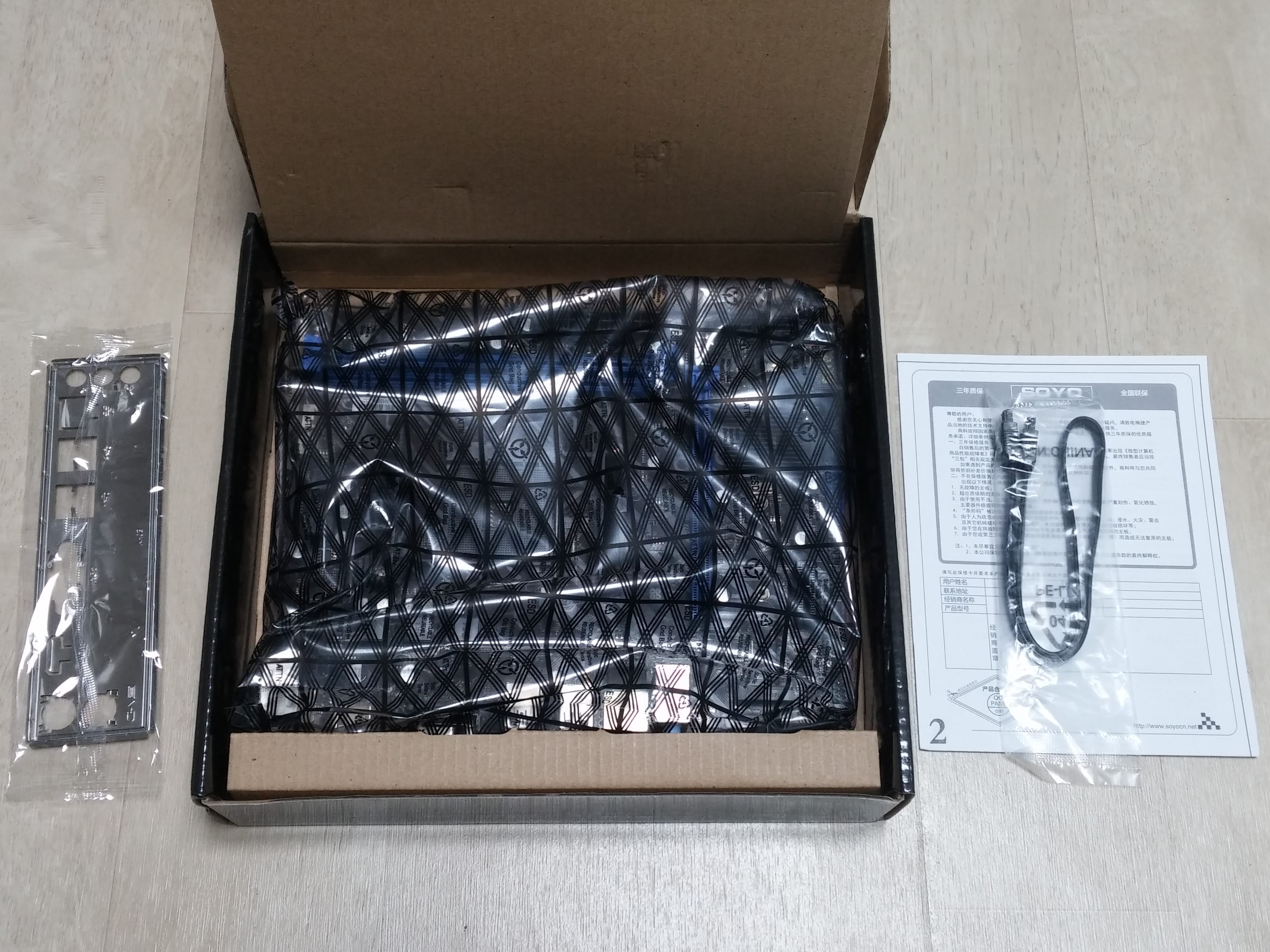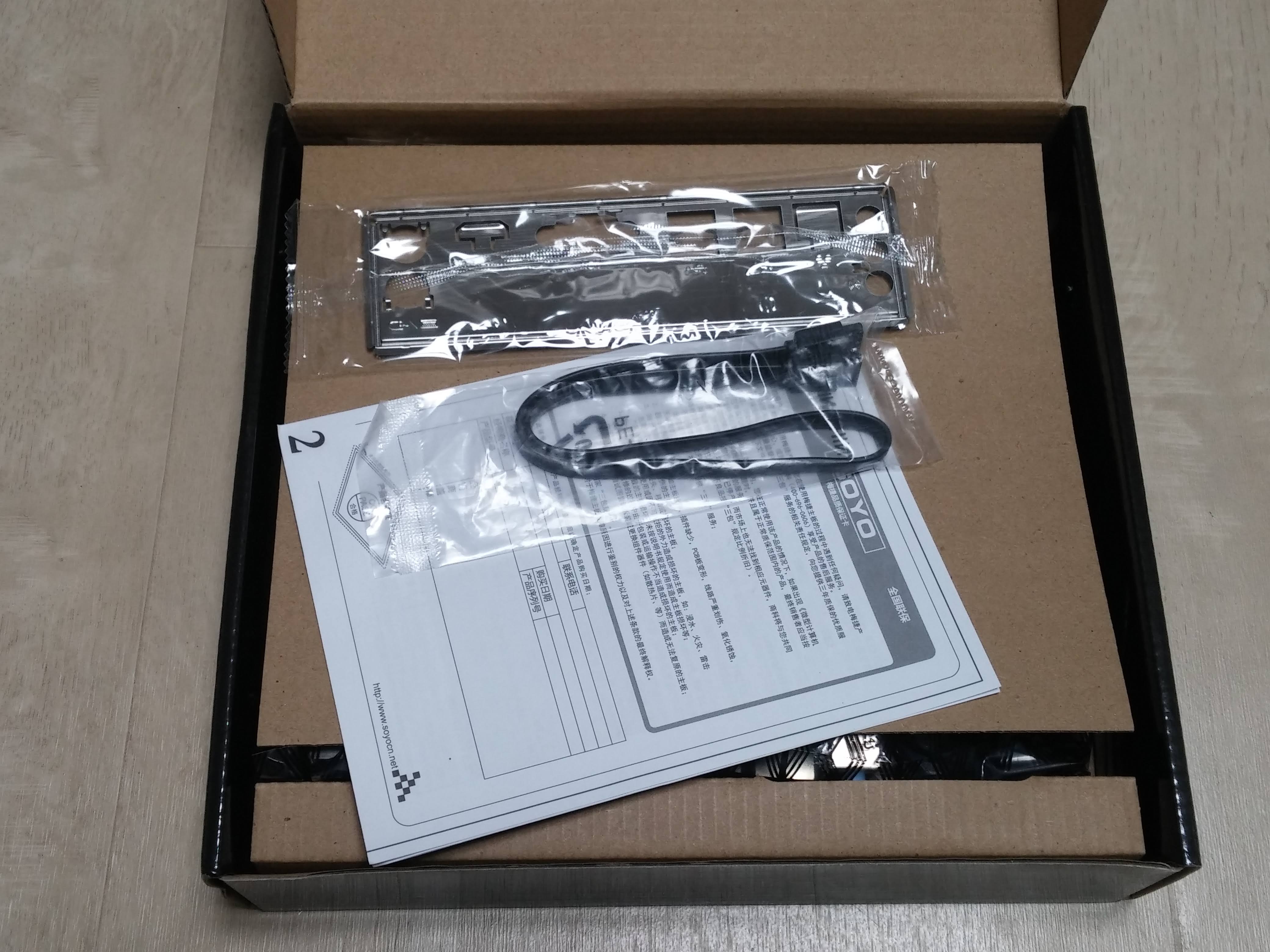 열어보니 후면패널과 SATA 케이블 1개 간단 설명서가 있습니다