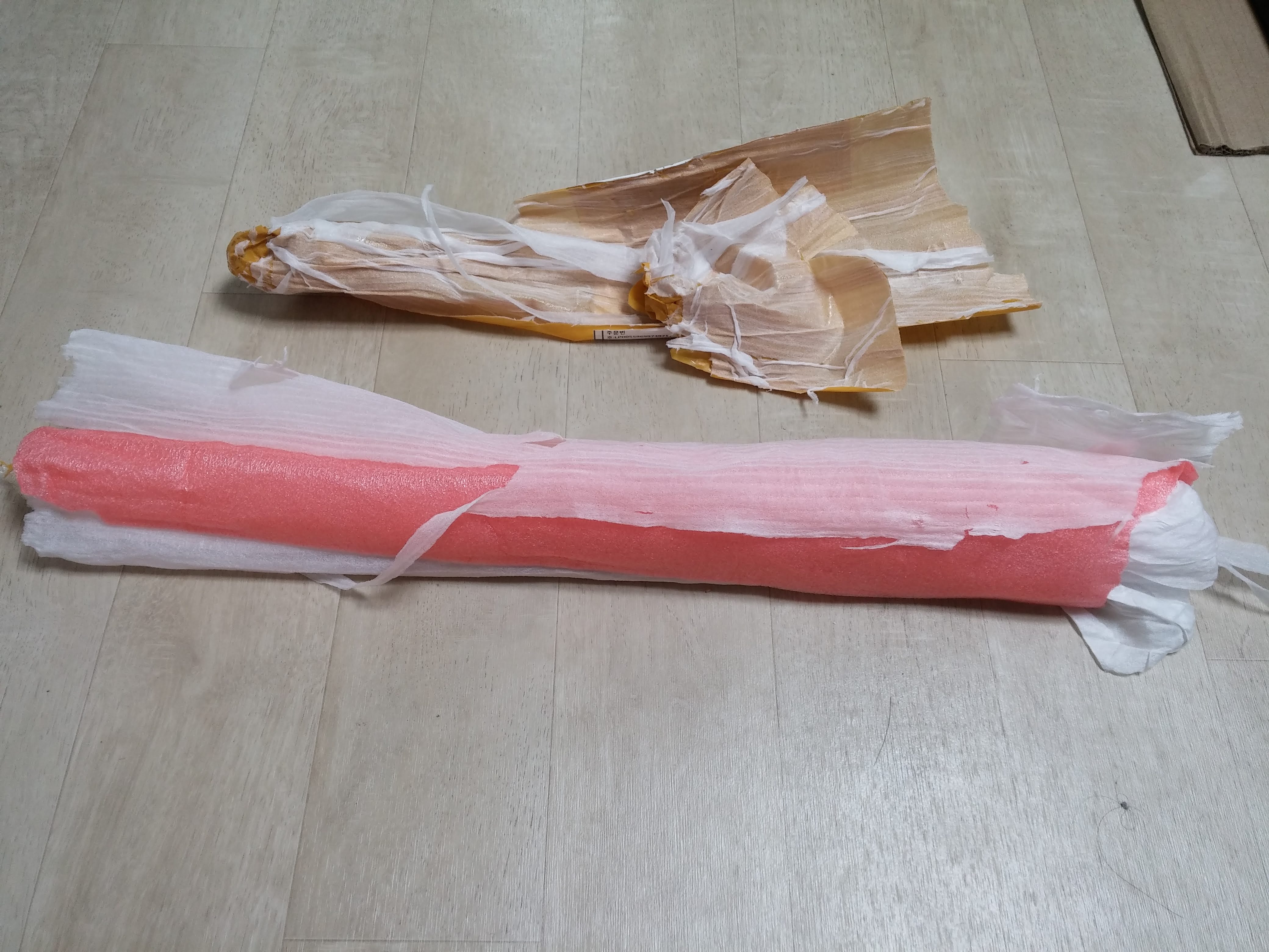 완충제를 벗겨내니 PVC 파이프에 안전하게 배송되었습니다