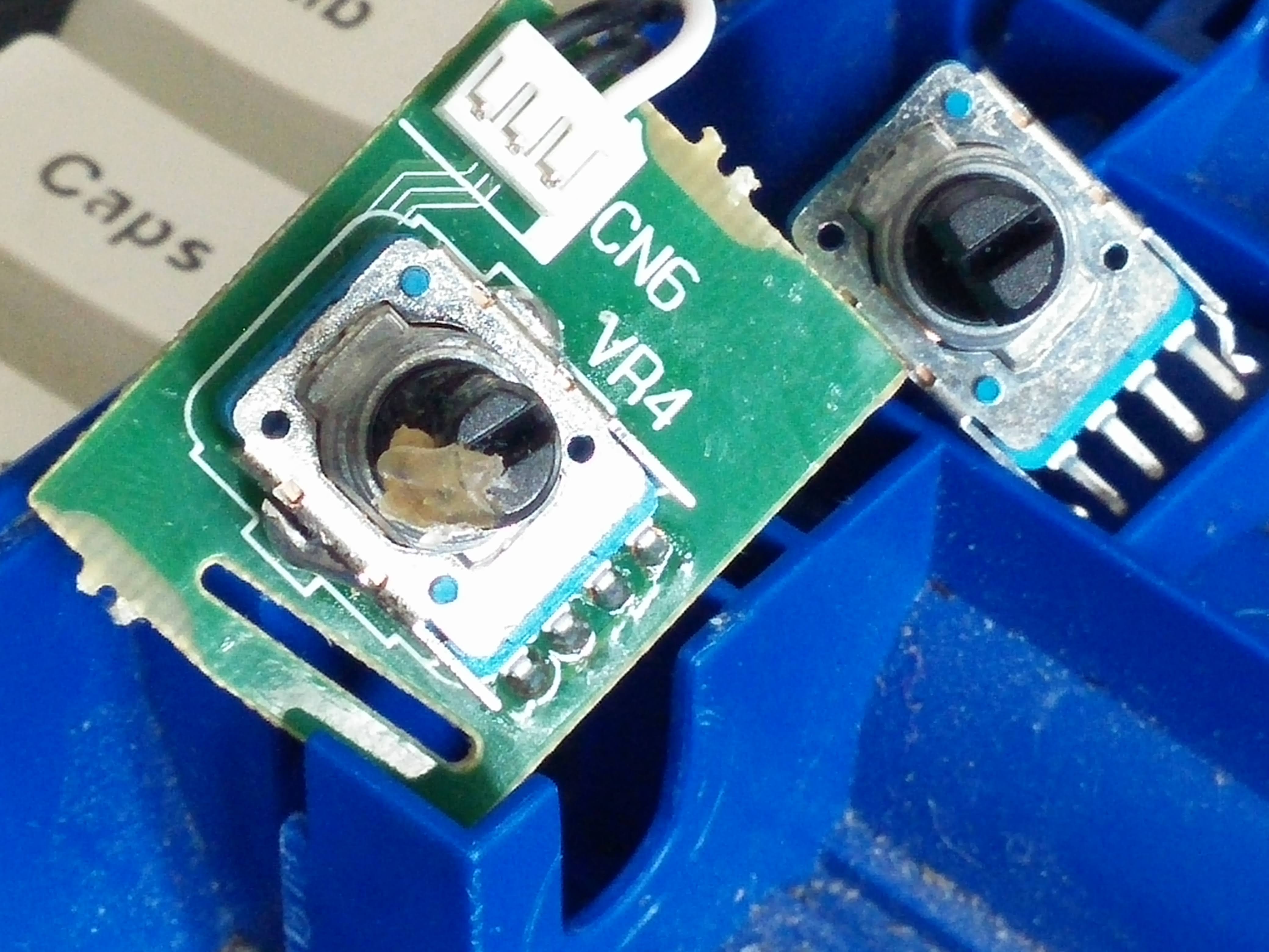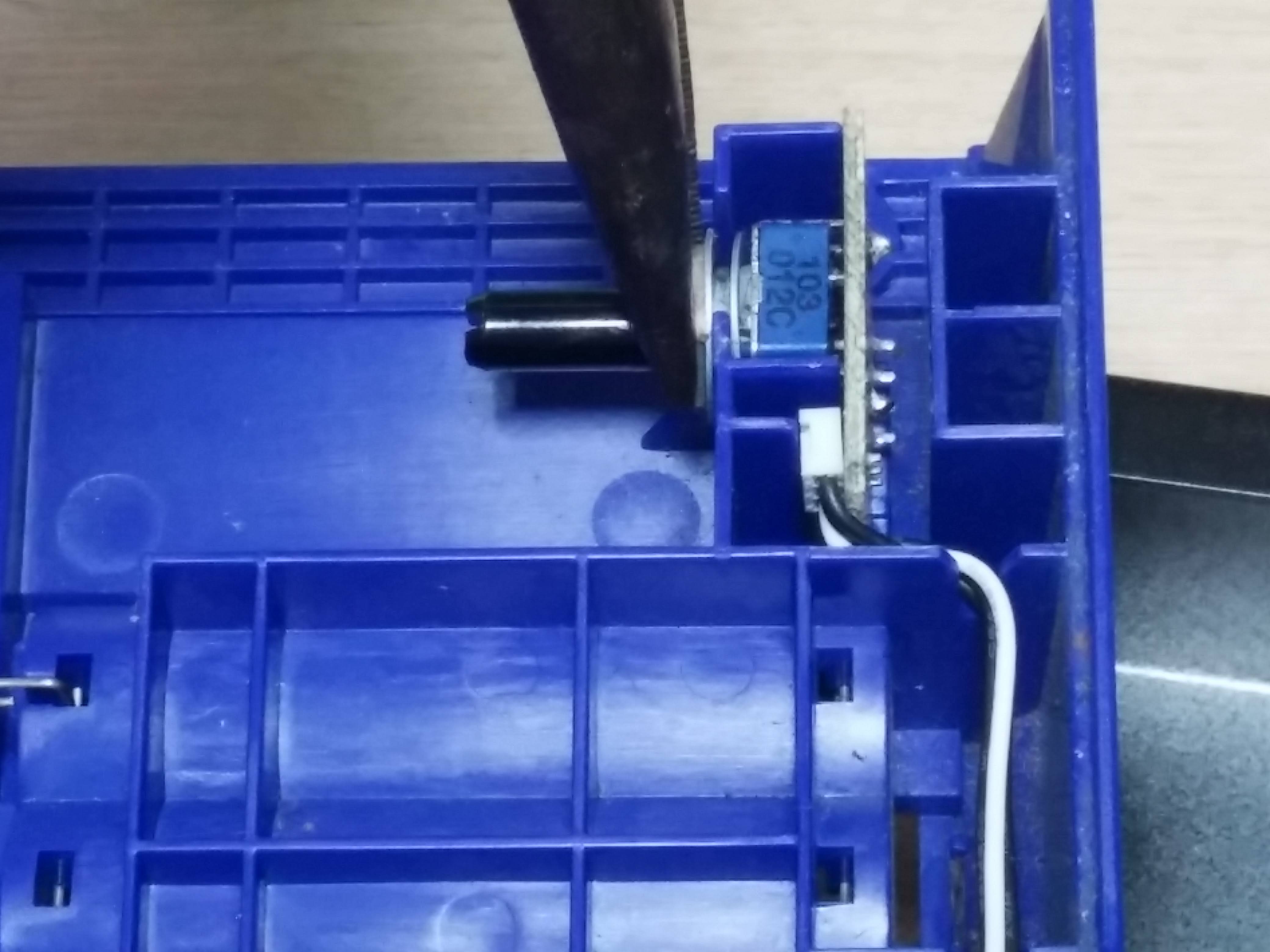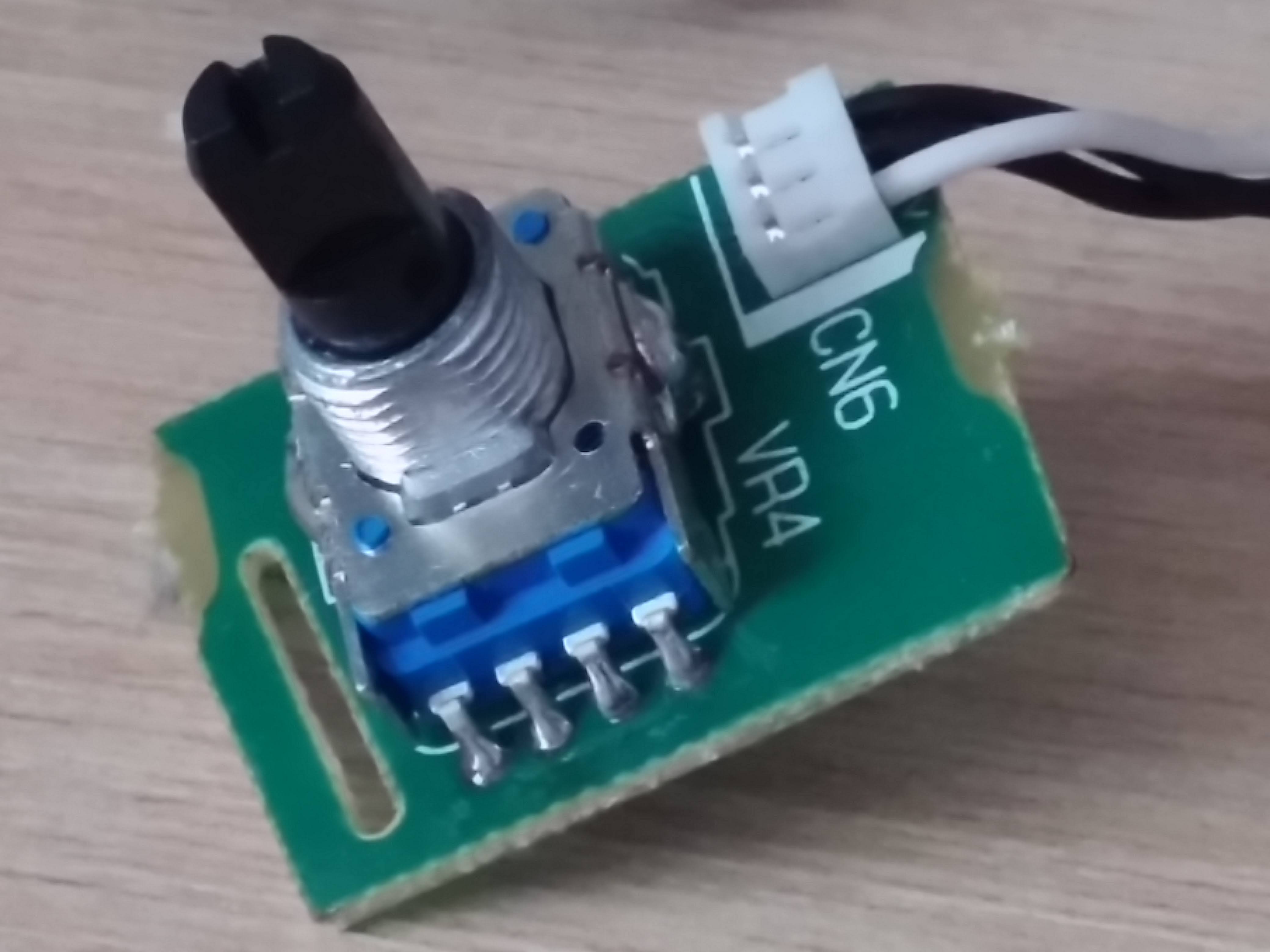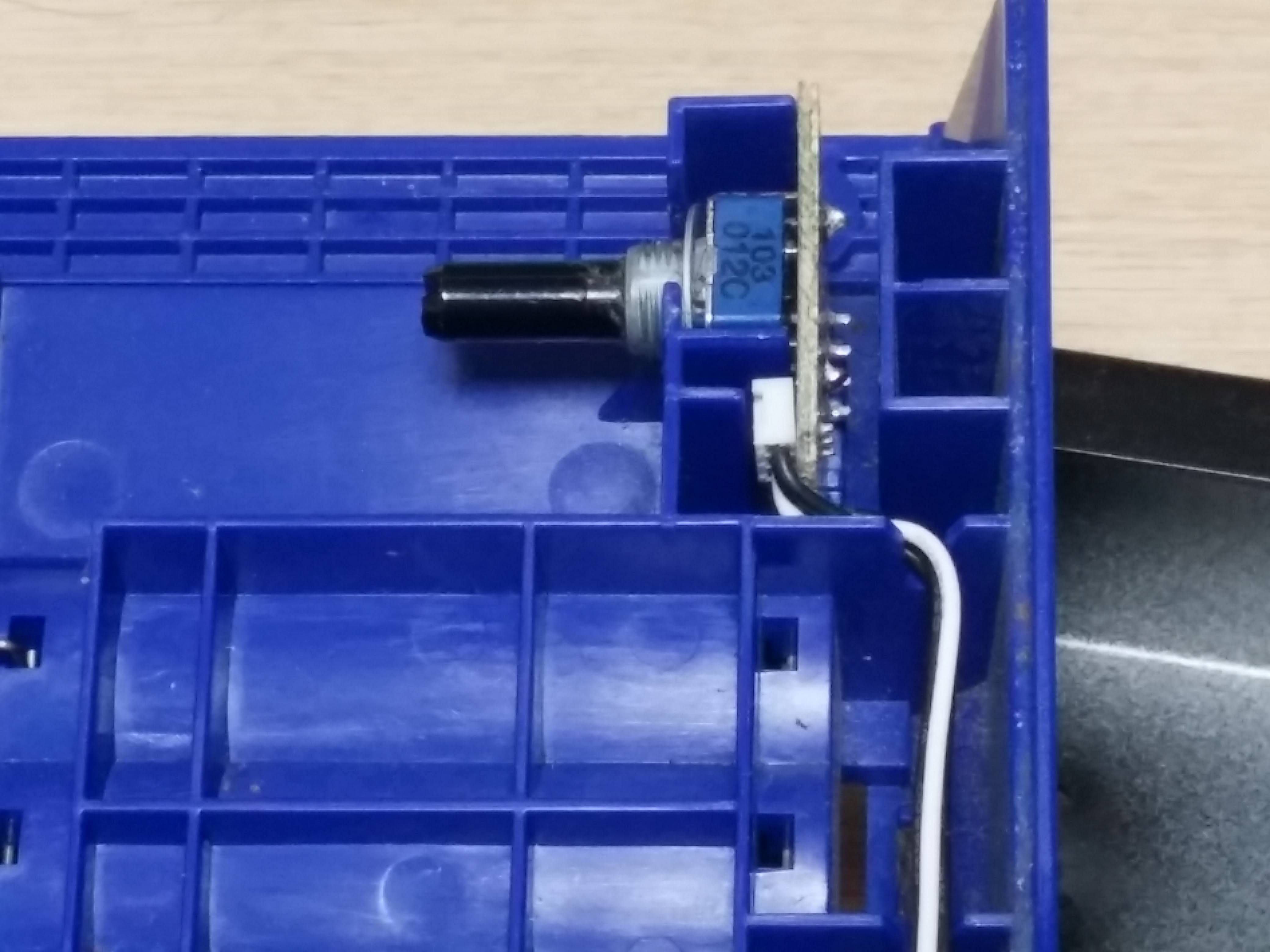 니퍼와 칼로 플라스틱 손잡이를 잘라내어 가변저항의 각도를 변경하고
