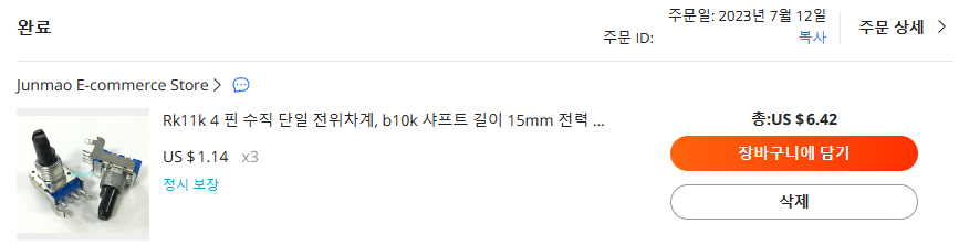 다음에는 10k C type이면서 중앙에 멈춤이 없는 smooth feel에 노브 길이도 잘 맞는 부품을 주문하여
