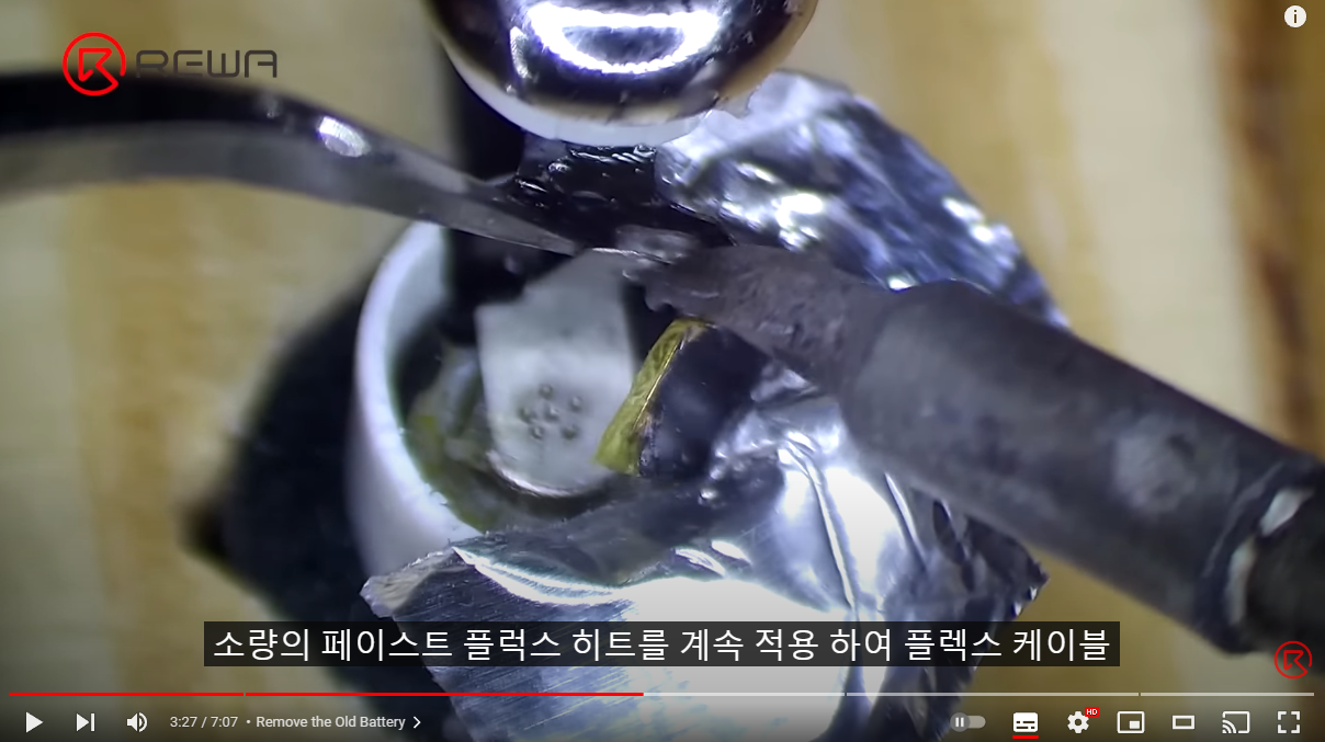 아래의 REWA 동영상 장면과 같이 플럭스를 사용하고