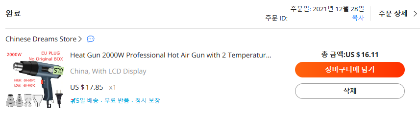 E. 열풍기 : 헤어드라이어로 하는 분도 있지만 성공률을 높히려면 온도를 설정할 수 있는 열풍기가 좋습니다