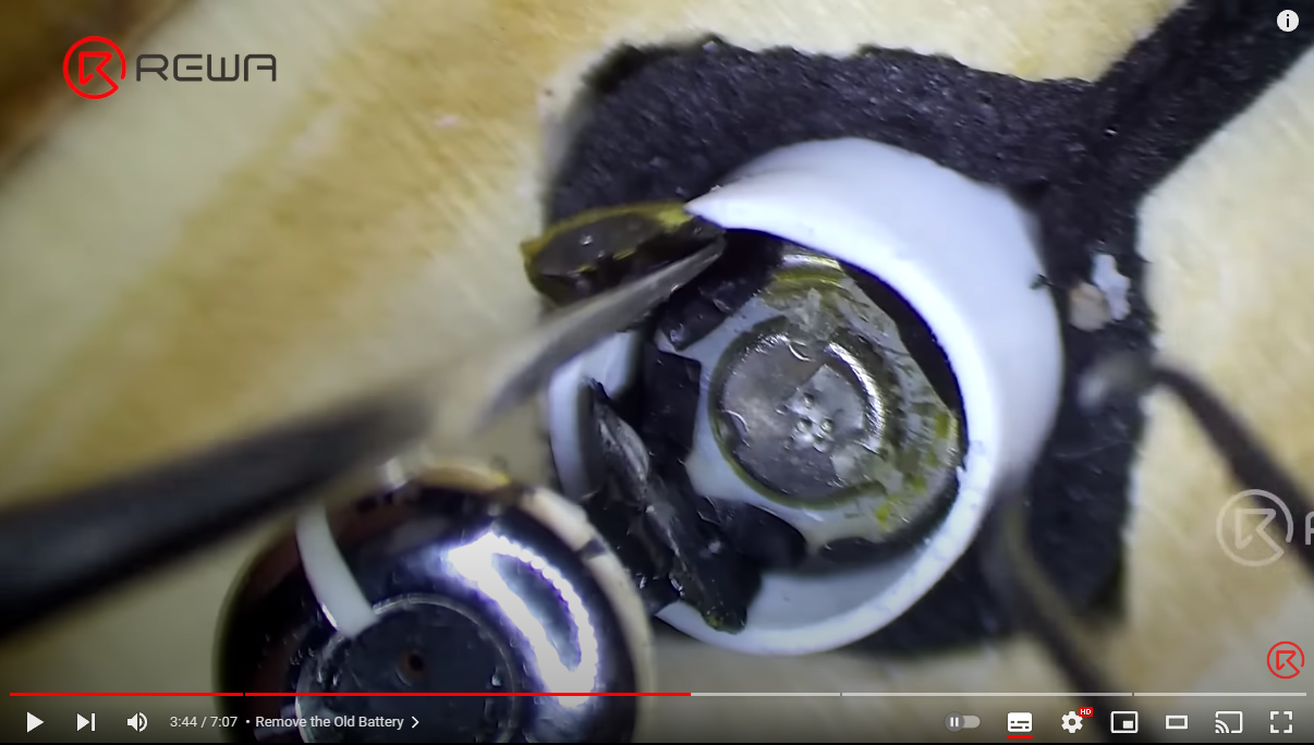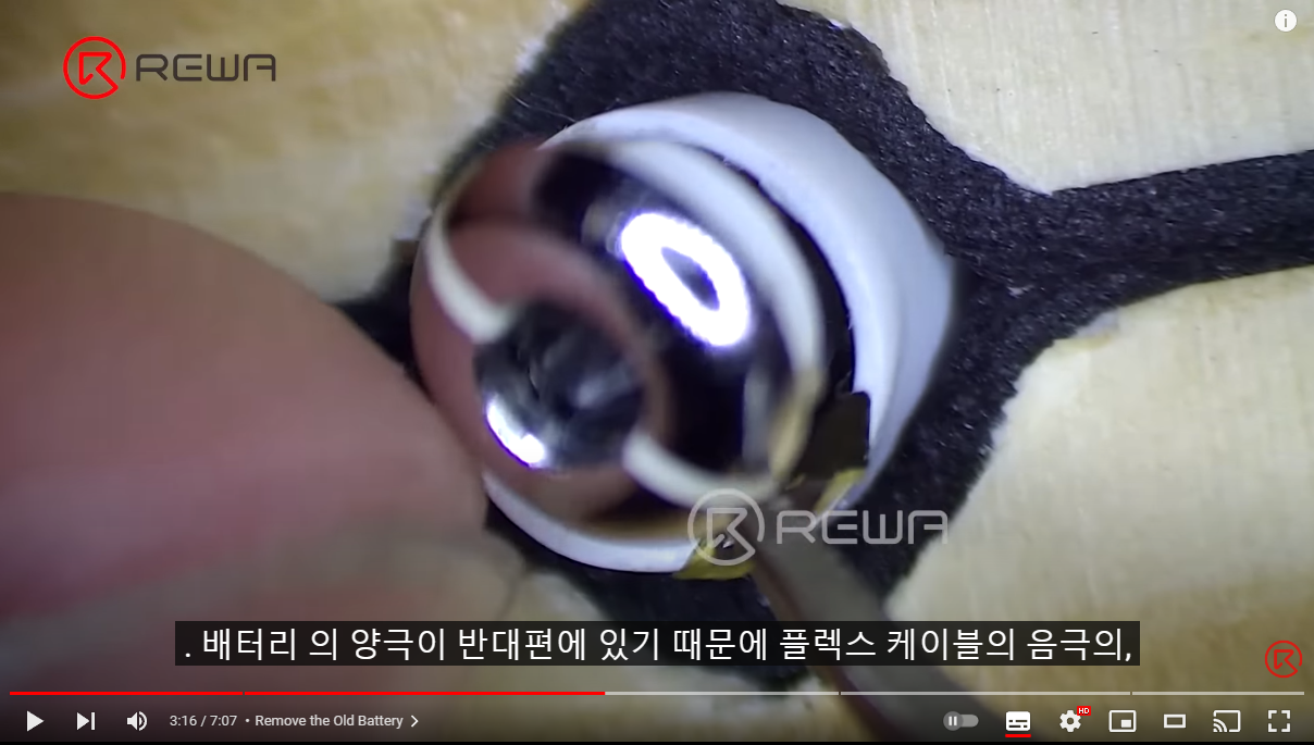 아래의 REWA 동영상 장면과 같이 배터리의 양극단자가 보입니다
