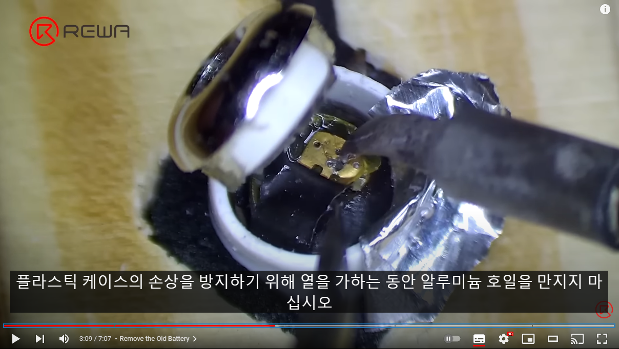 REWA 동영상을 참조하여 양극 니켈단자를 당겨서 뜯어내면