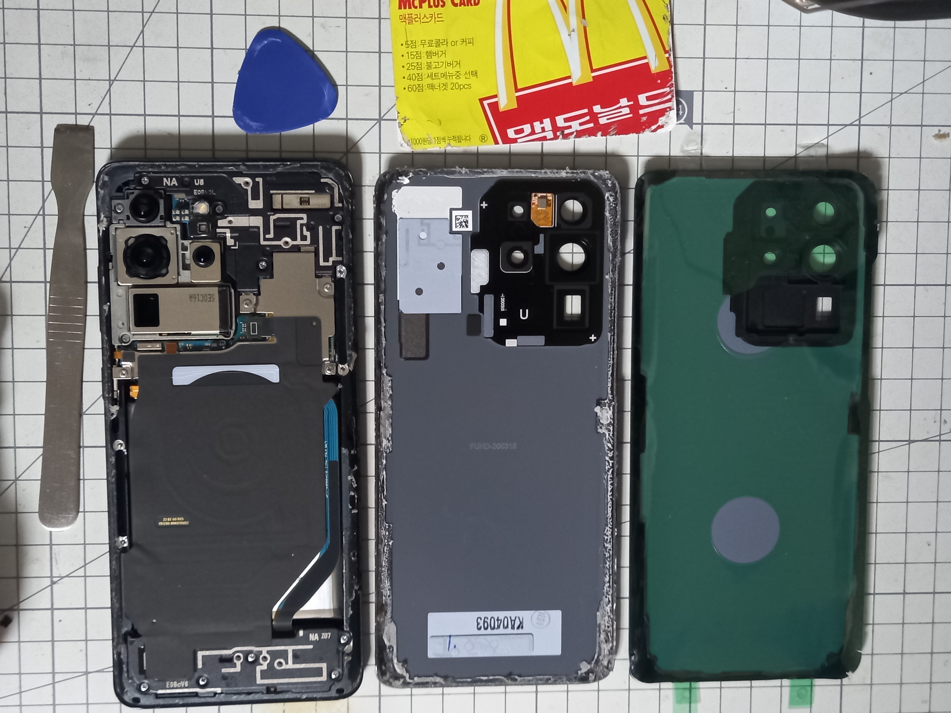 갤럭시 S20 시리즈의 뒷판을 열때 중요한 부분은