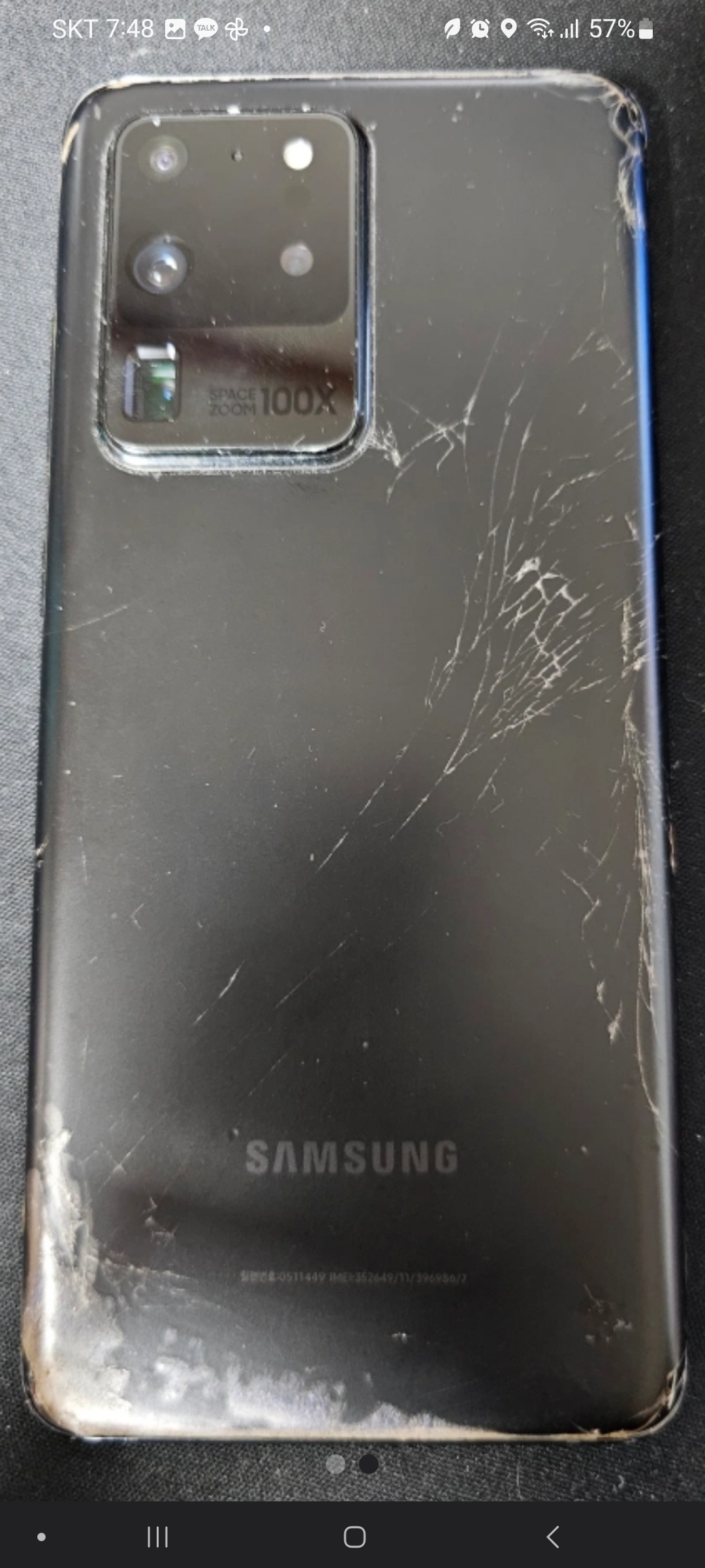 전면 유리는 깨진 곳이 없이 구석에 아주 조그만 흑점만 있고 뒷판은 많이 깨진