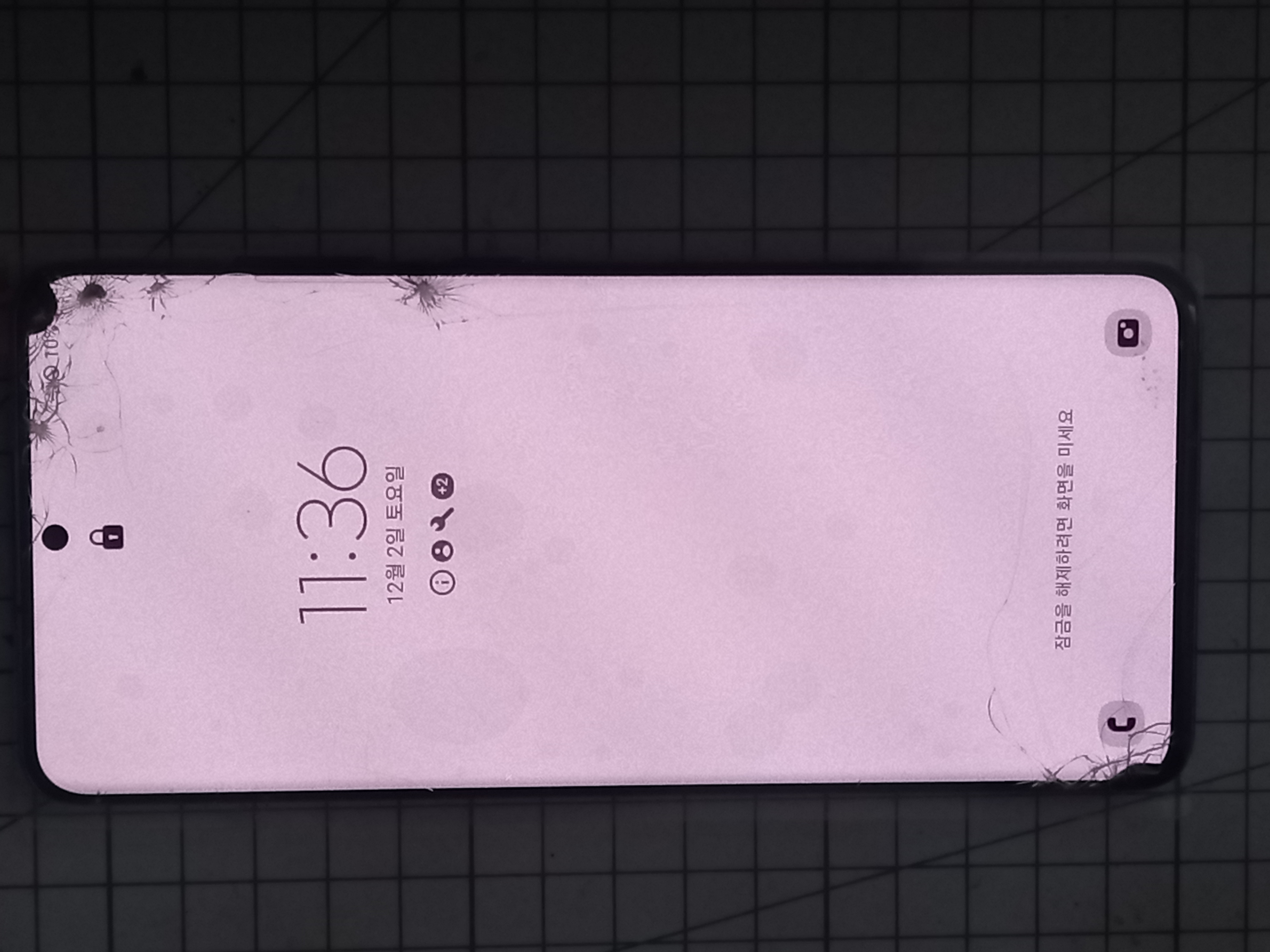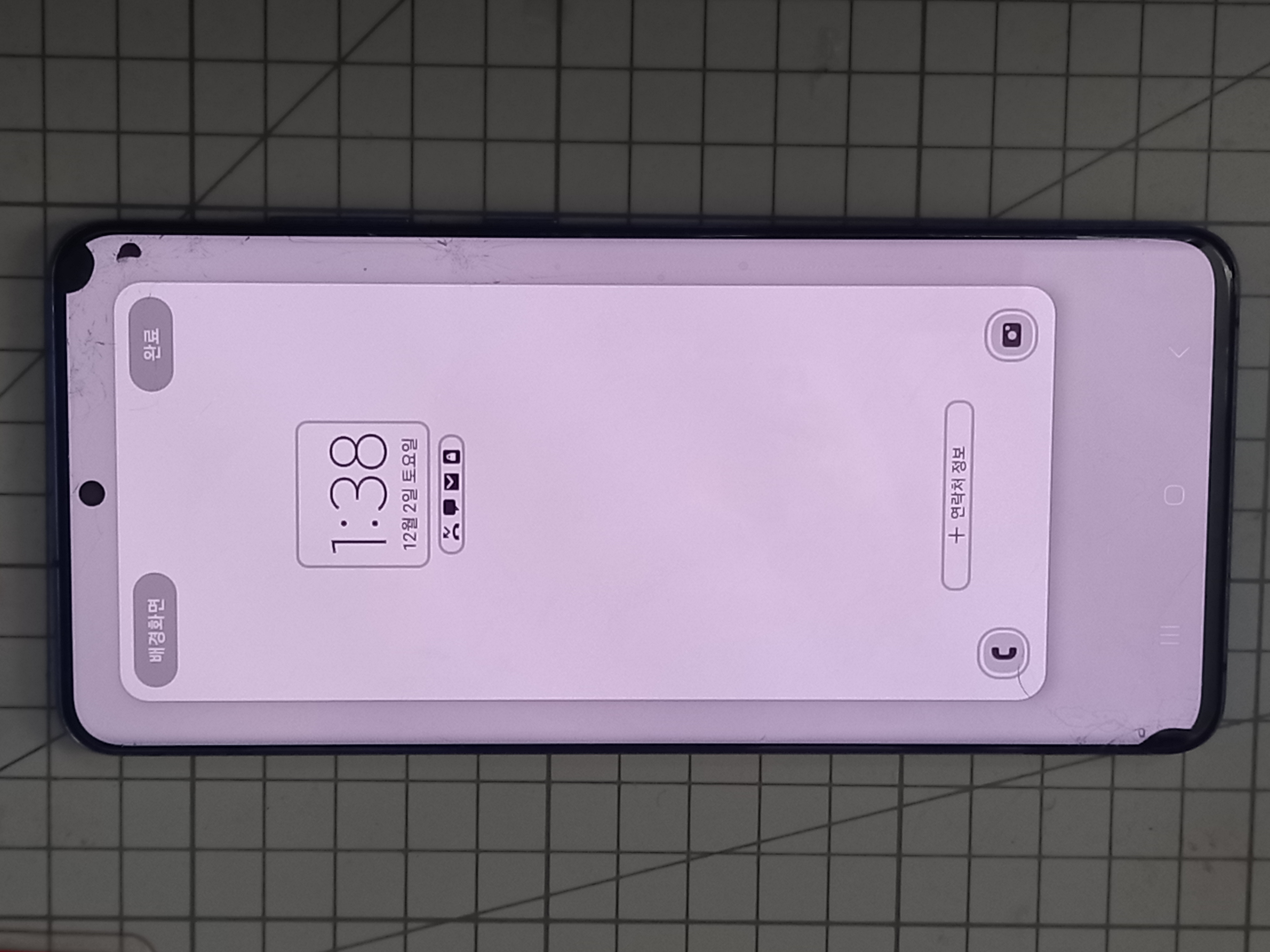 수리전에 상태가 잘 보이도록 흰 배경화면을 놓고 사진을 찍어보니