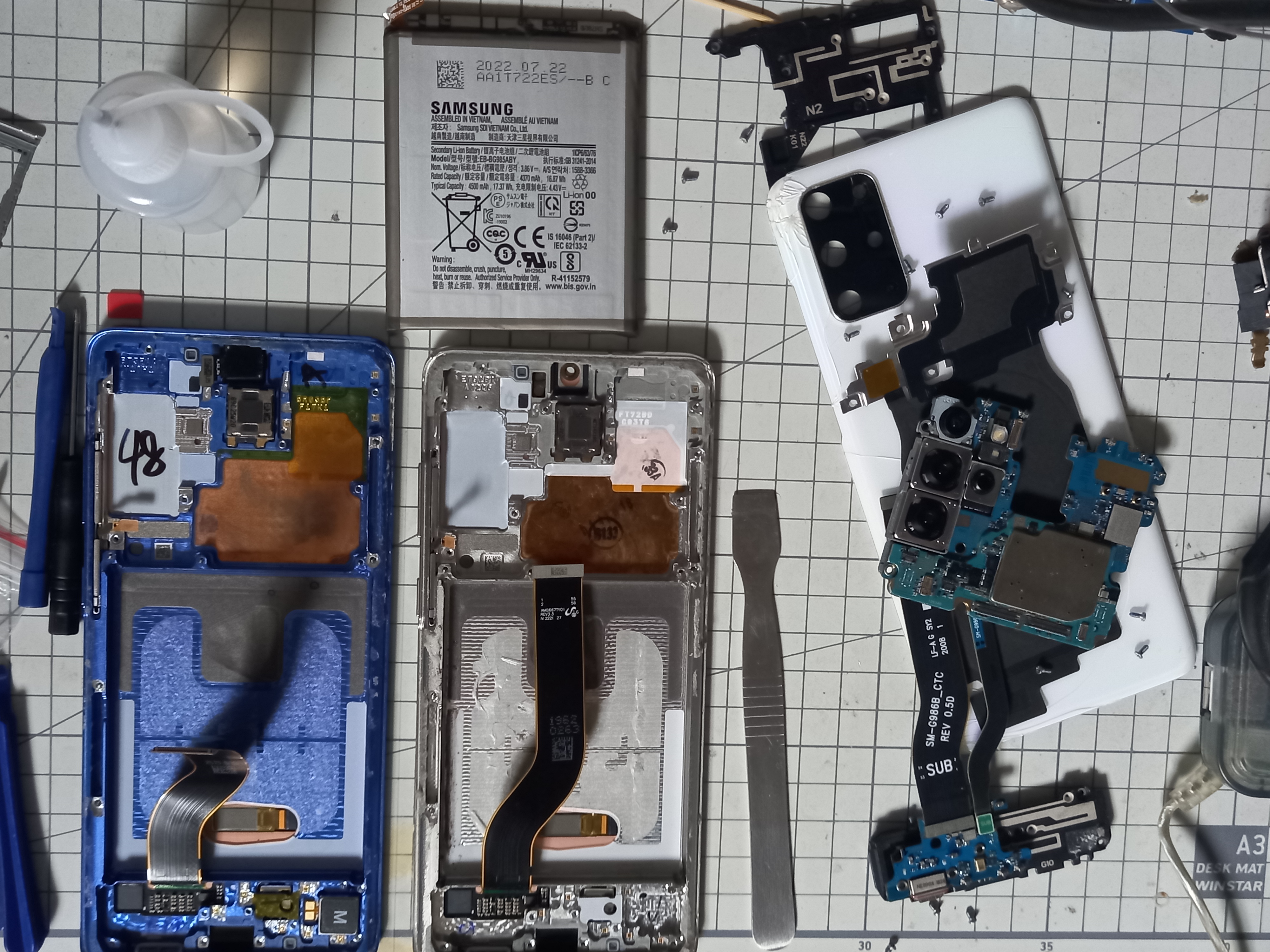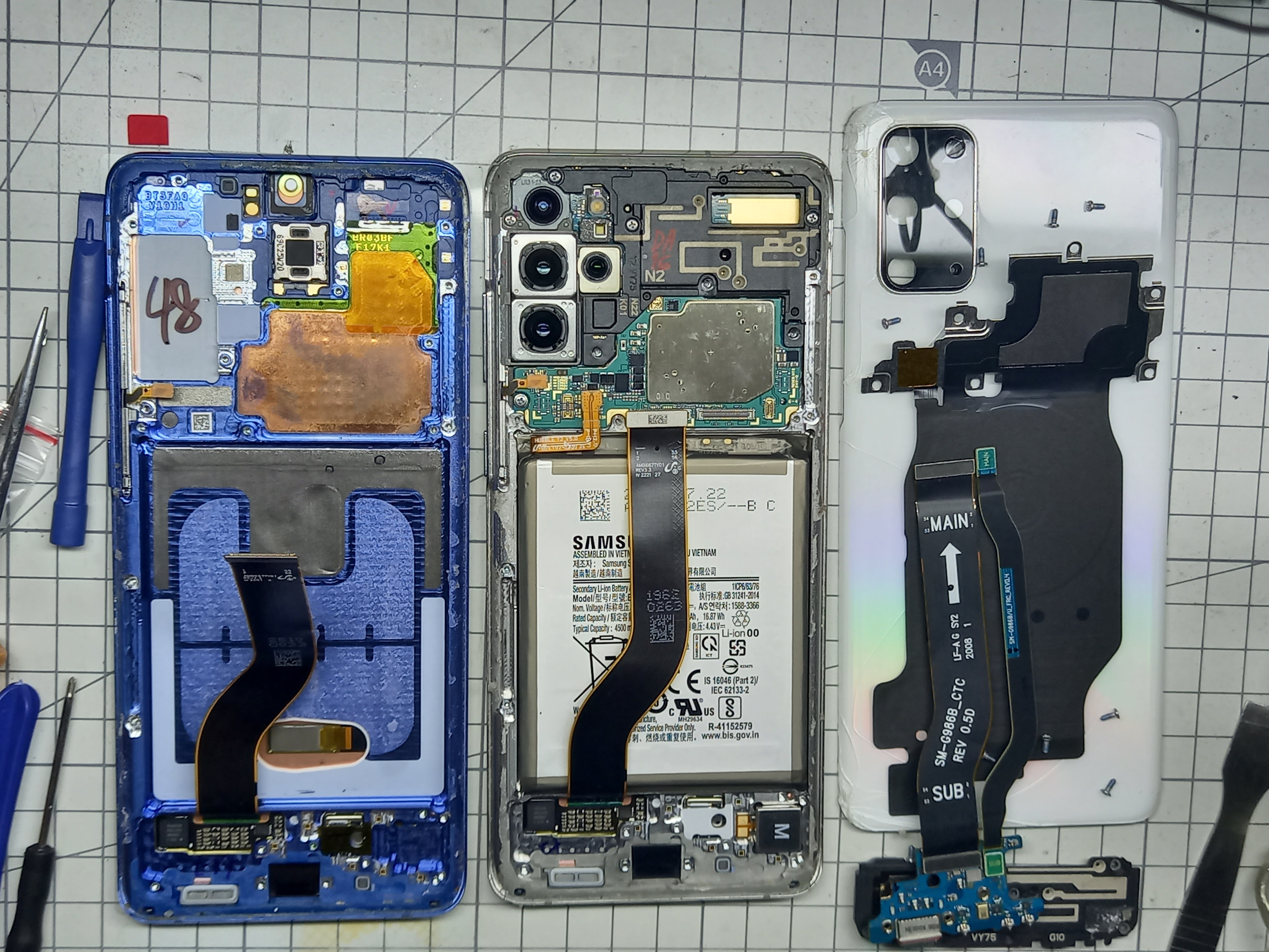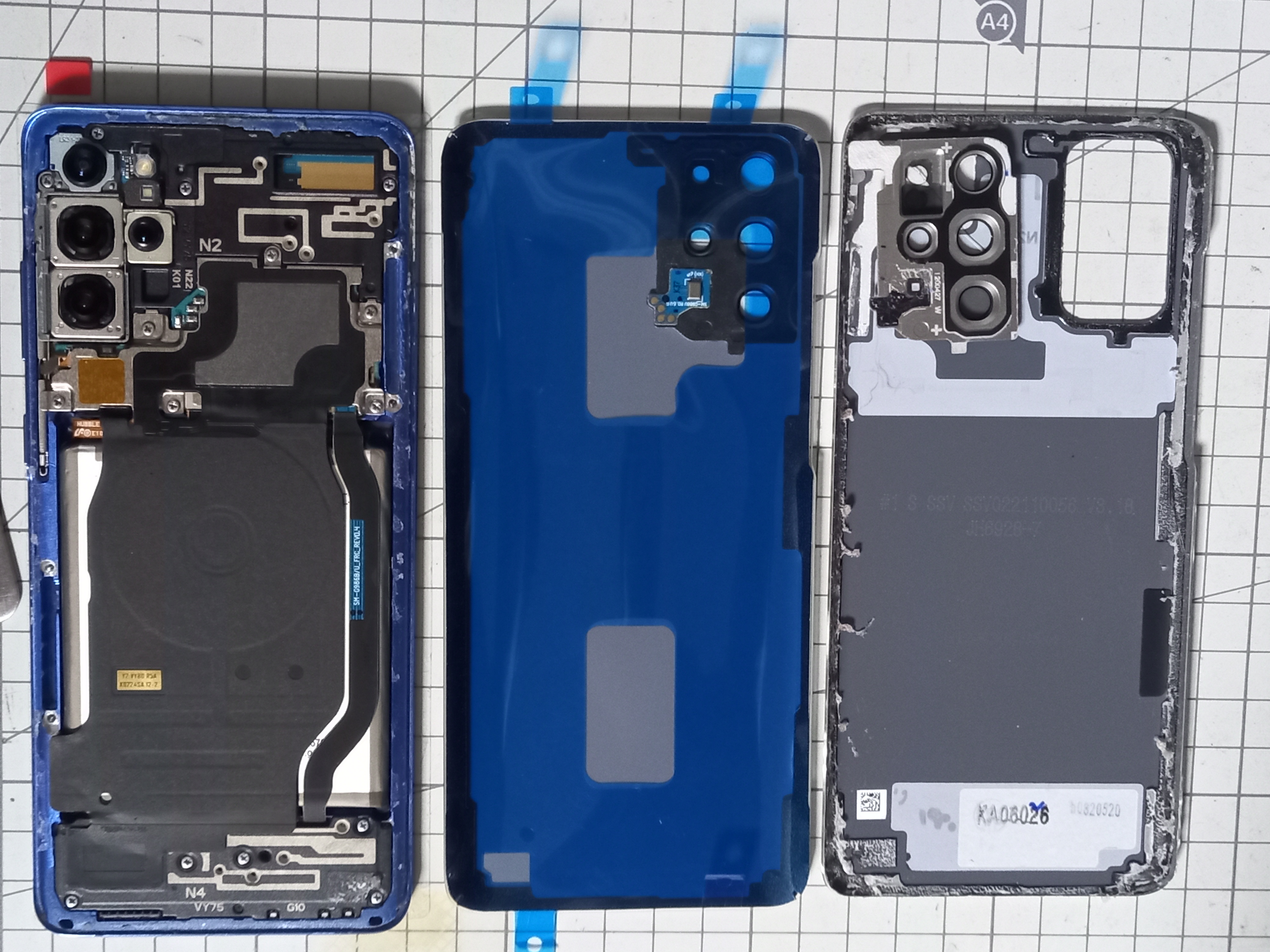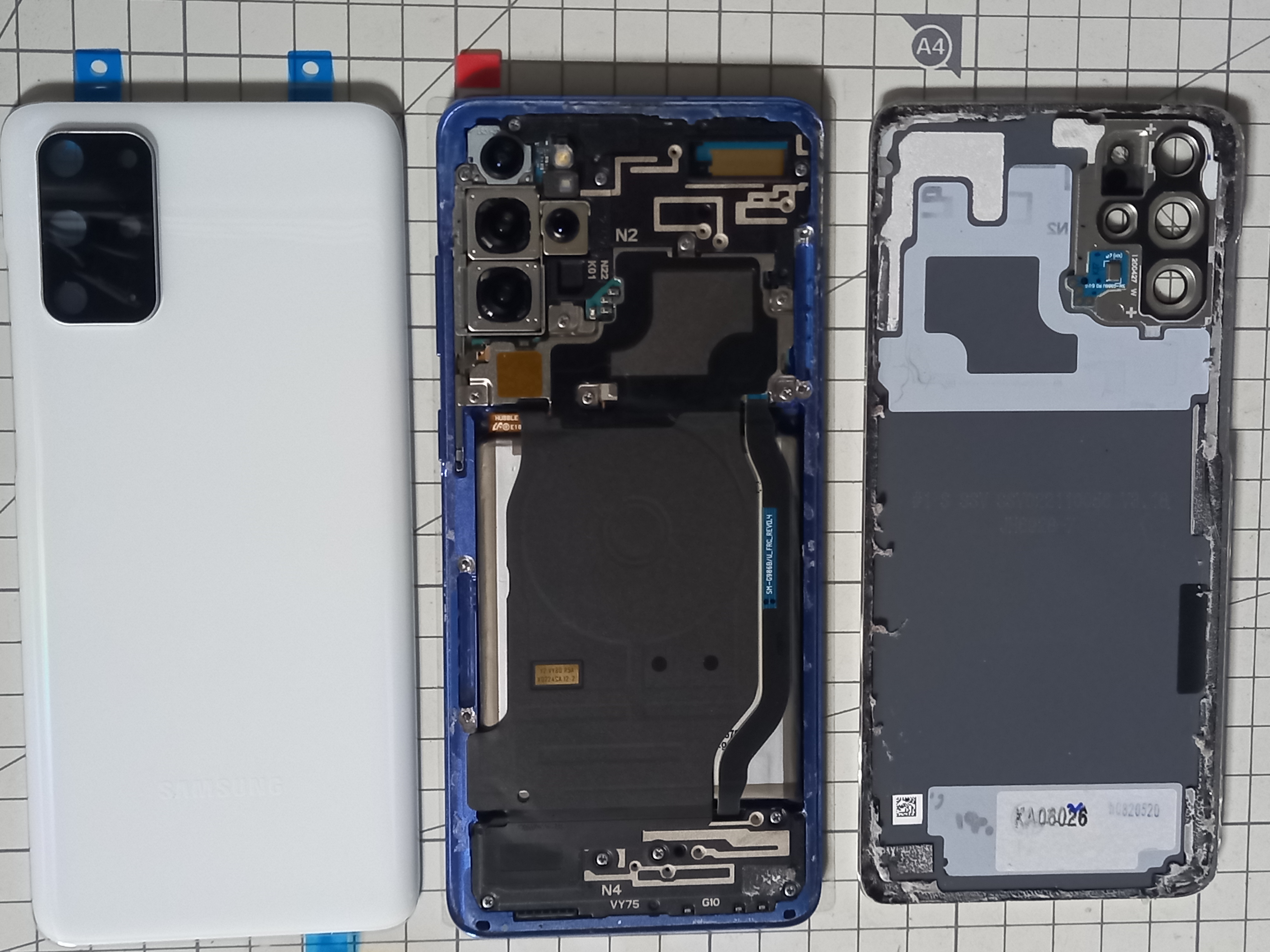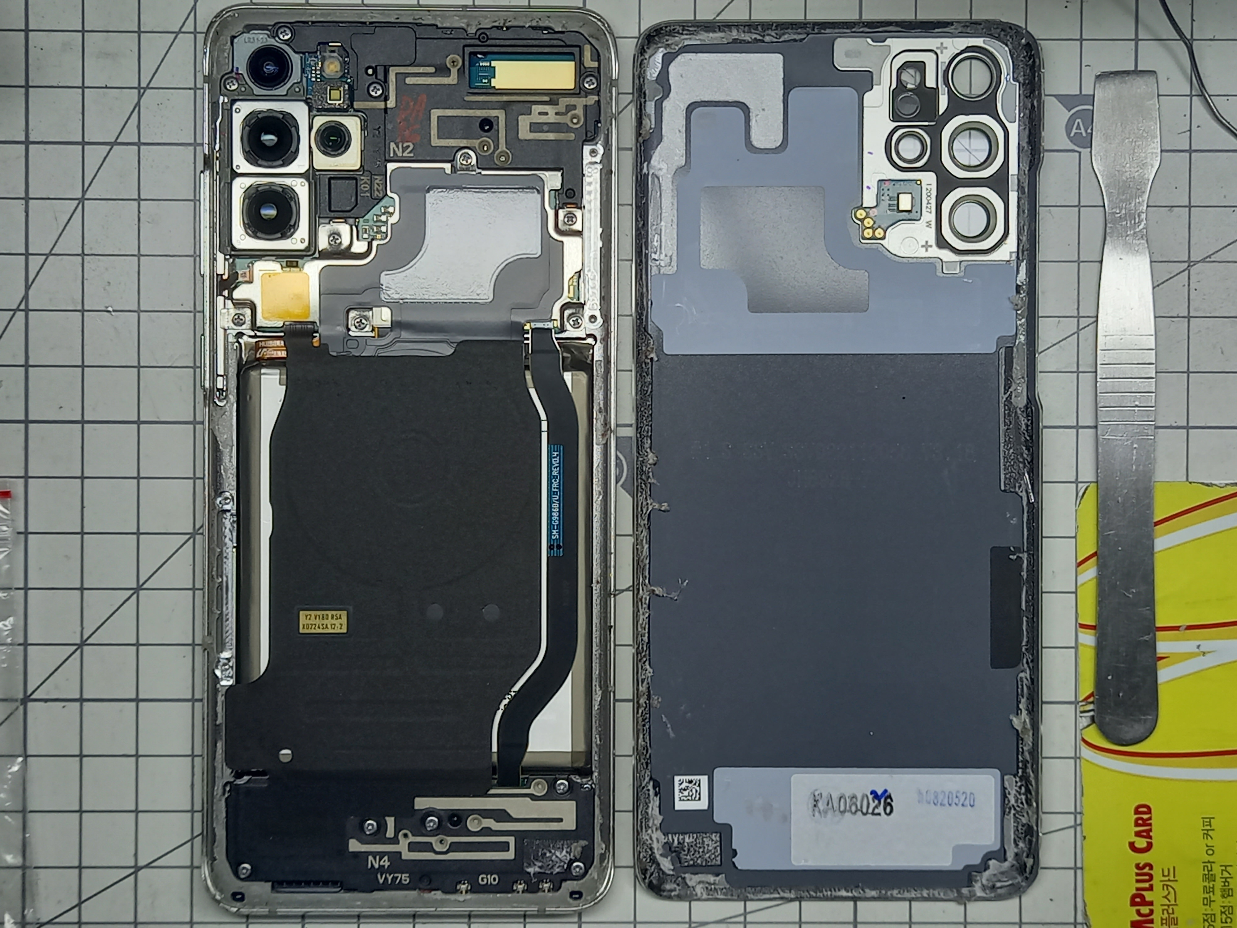 아래 사진의 오른쪽은 고장이 발생한 S20+ 의 뒷면이고