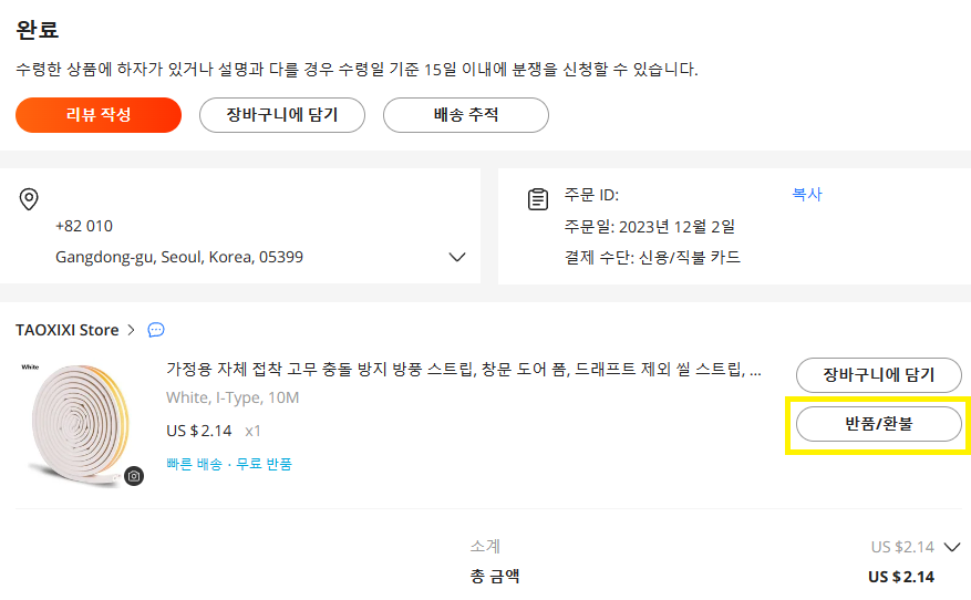 아래 스크린샷과 같이 수령일로부터 15일 이내까지 분쟁을 신청할 수 있으니 주의하세요