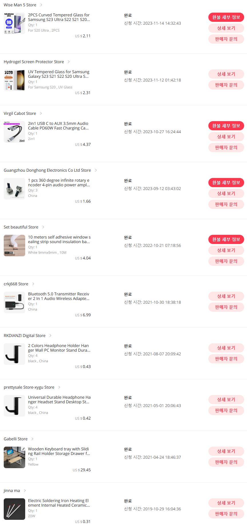 오늘은 2016년부터 약 7년간 알리익스프레스에서