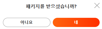 패키지를 받으셨습니까에서 '네'를 선택한 경우 아래의 이유들에서 선택을 진행합니다