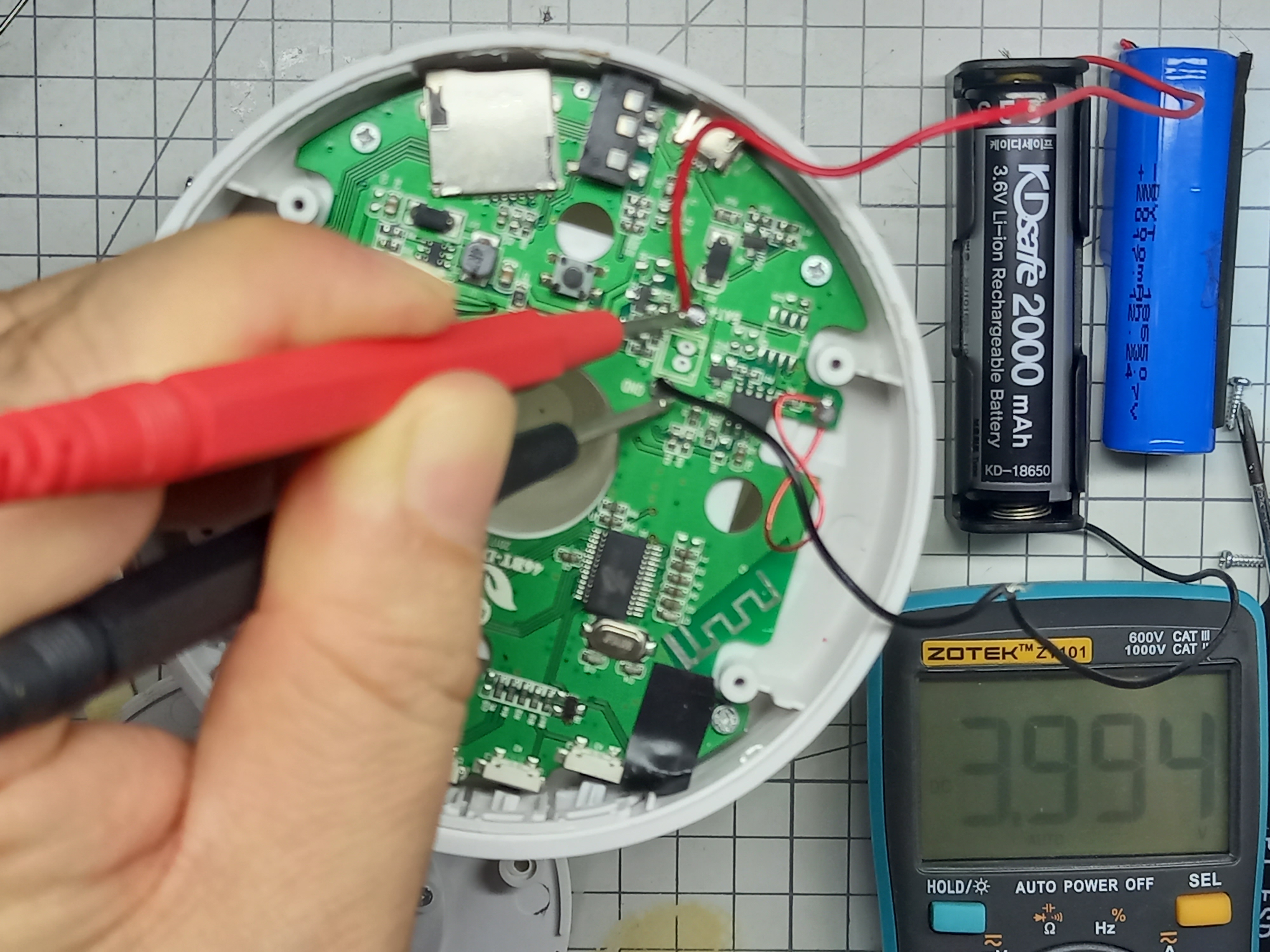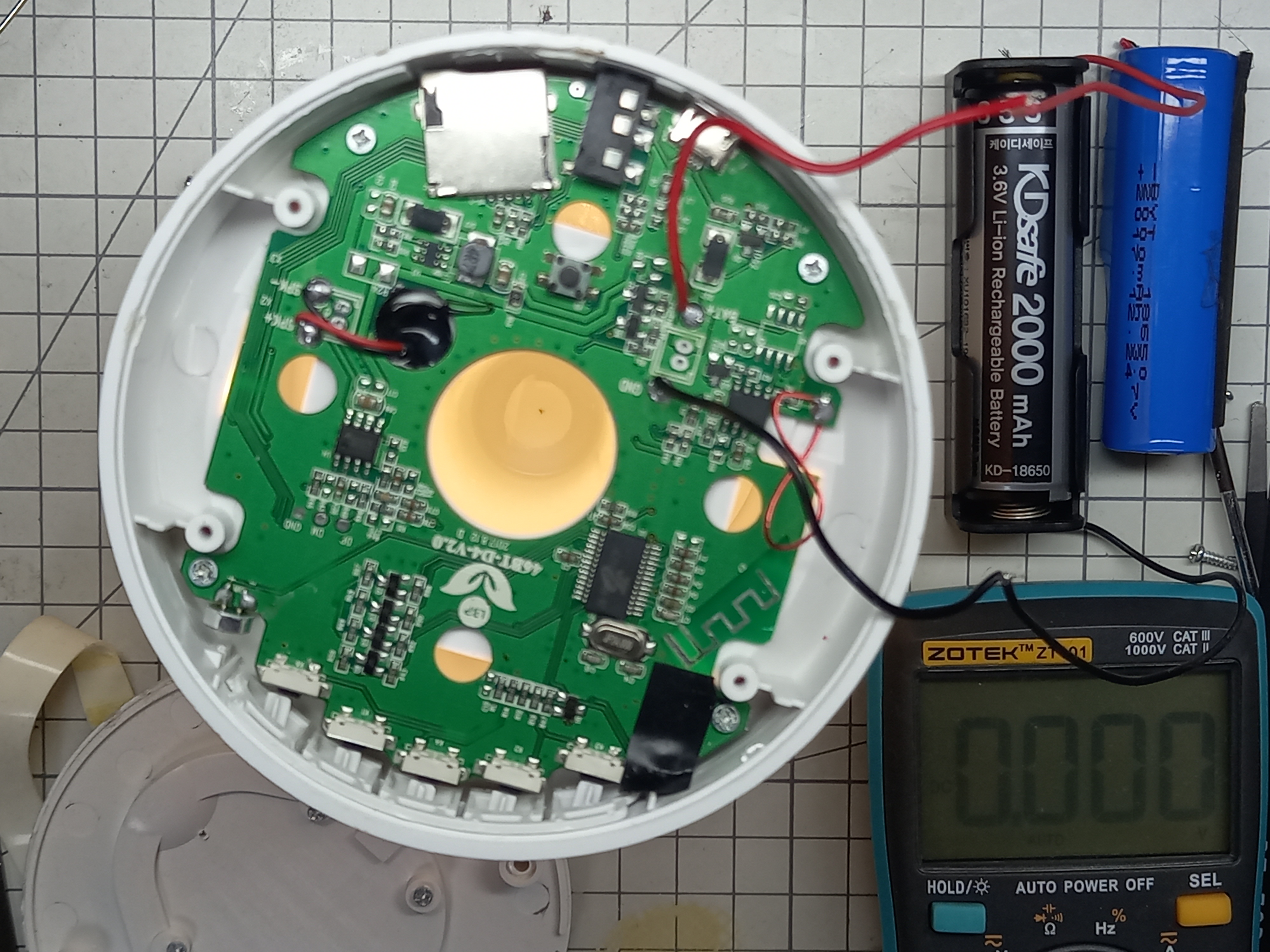 배터리를 꺼내보니 18650 규격의 3.7V 2000mAh 리튬이온 배터리입니다