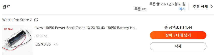 임시 테스트용 18650 배터리 케이스는 아래와 같이 0.36$에 구입했습니다