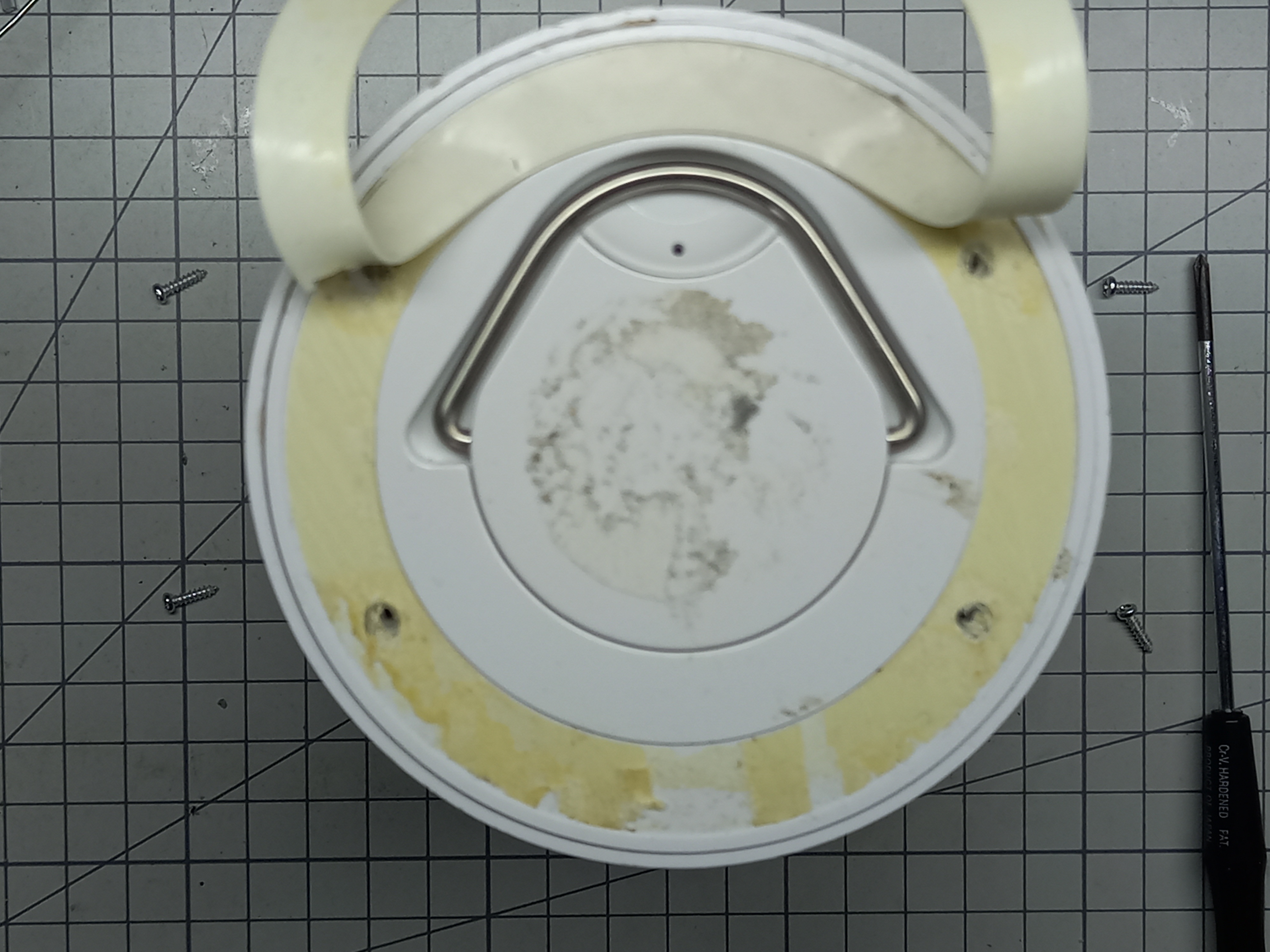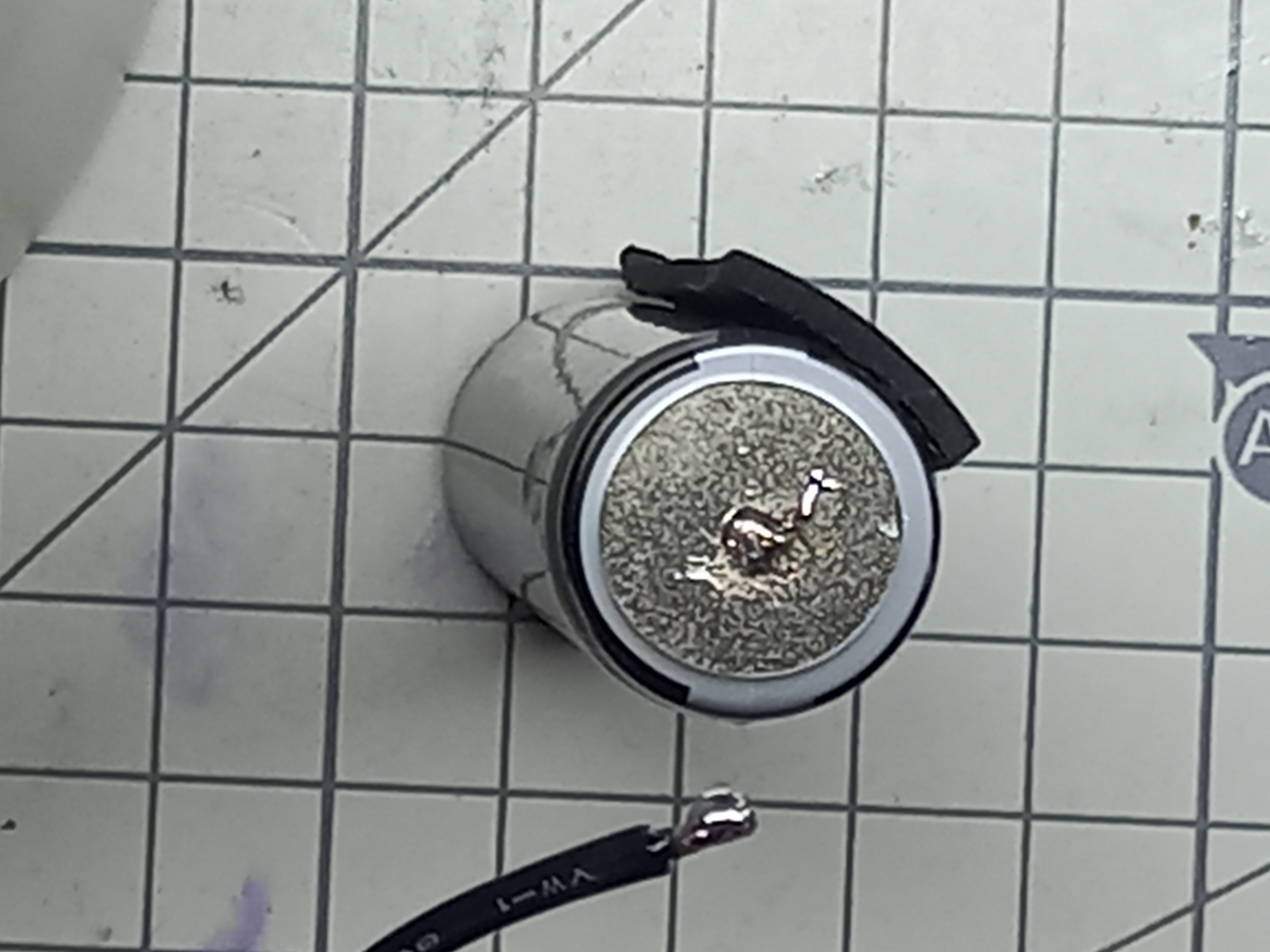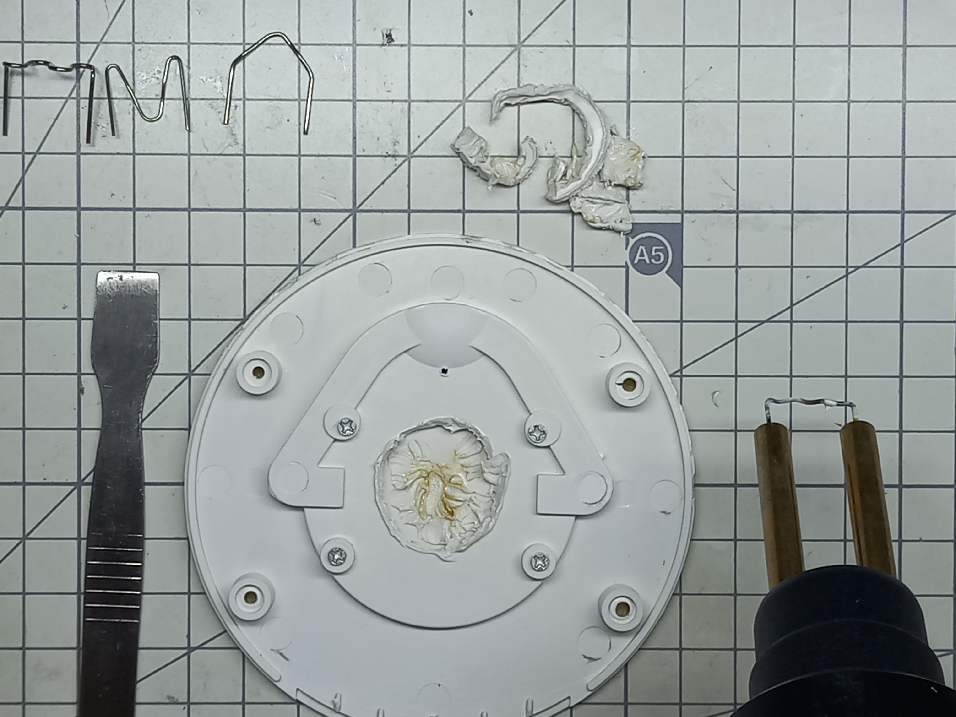 사진의 위쪽 중앙에 녹여서 떼어진 플라스틱 조각의 일부가 보입니다