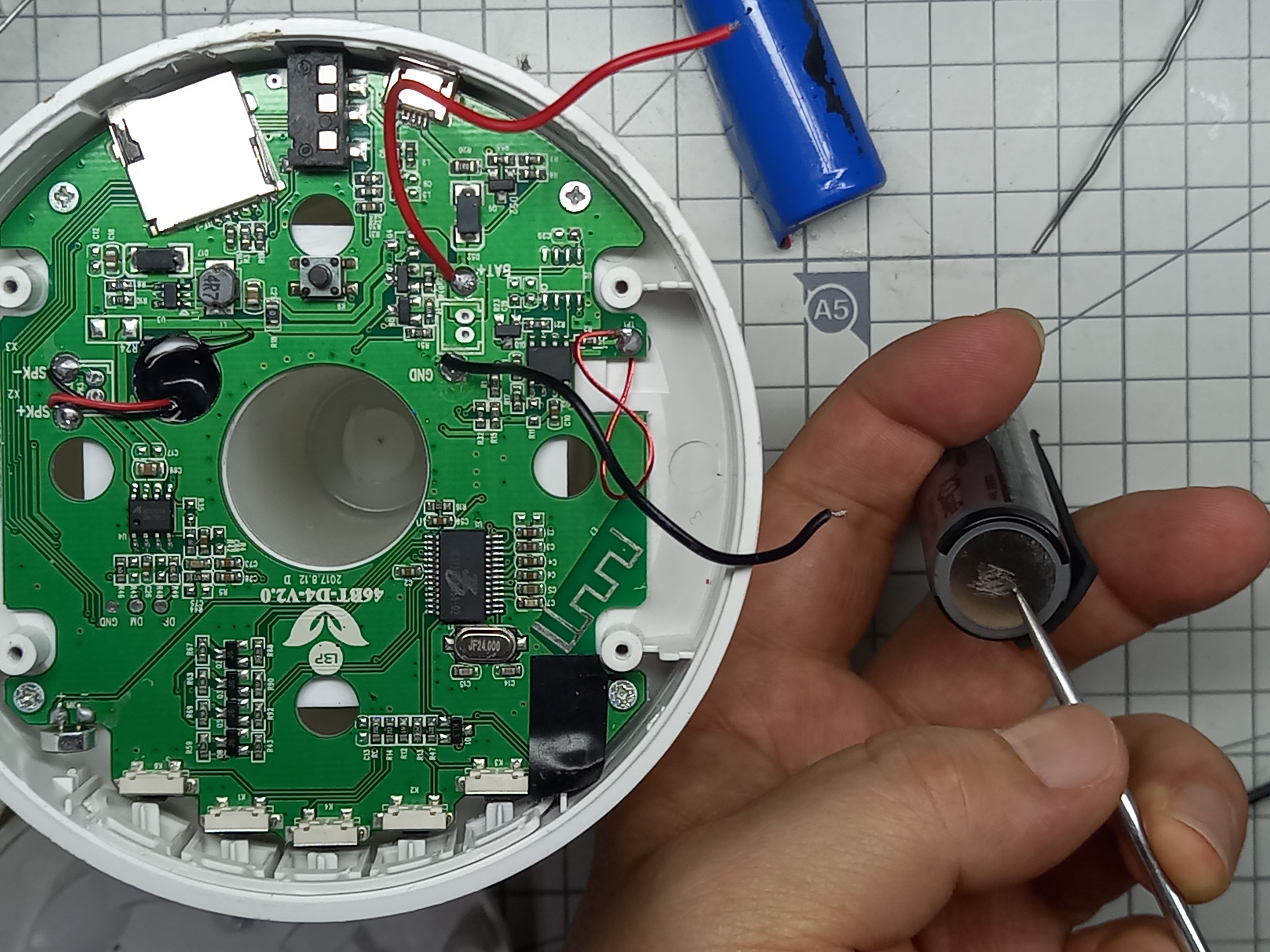 새 음극 전선을 PCB에 납땜하여 연결하였습니다