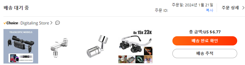 총 15.07$ 제품을 6.77$에 주문하였습니다