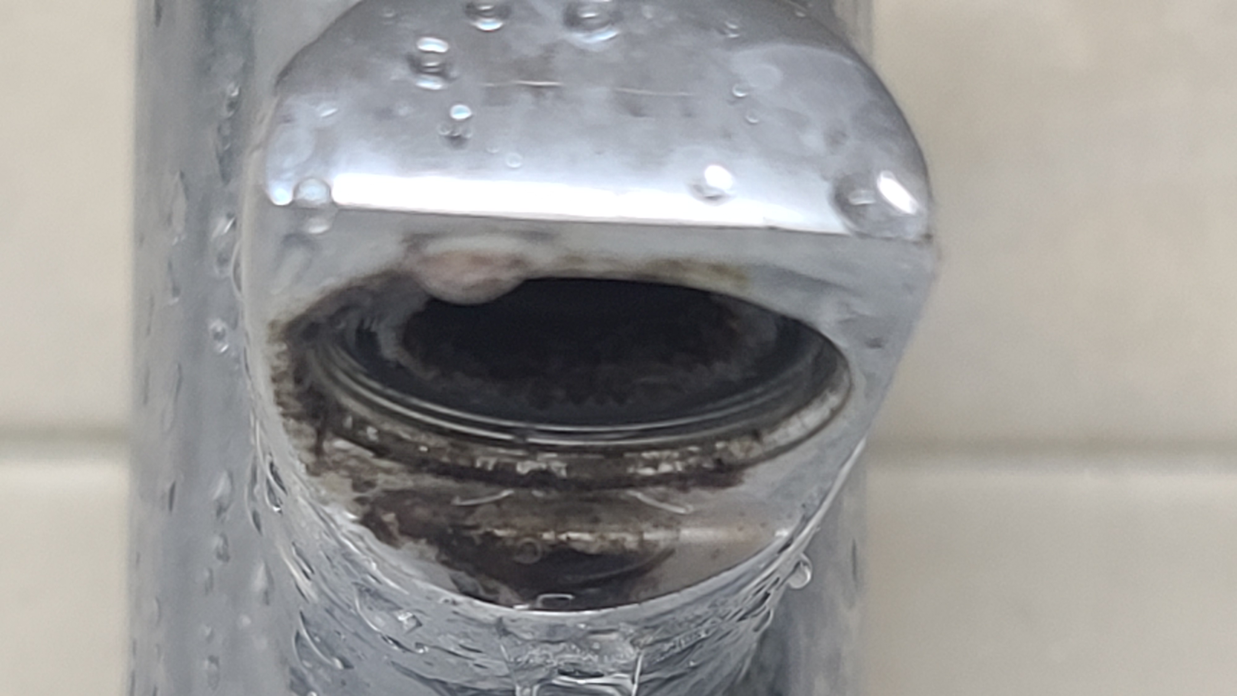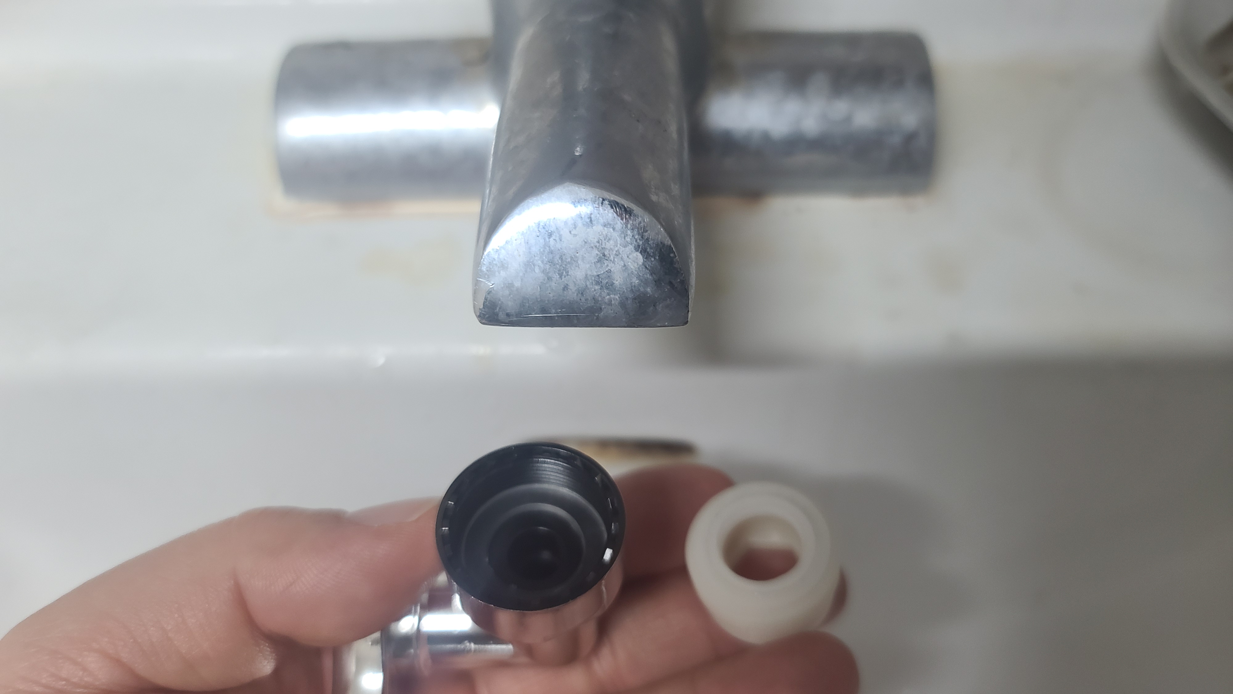 세면대 수도꼭지의 끝부분을 잘 보면 아래와 같이 스패너를 물릴 수 있는 부분이 있습니다