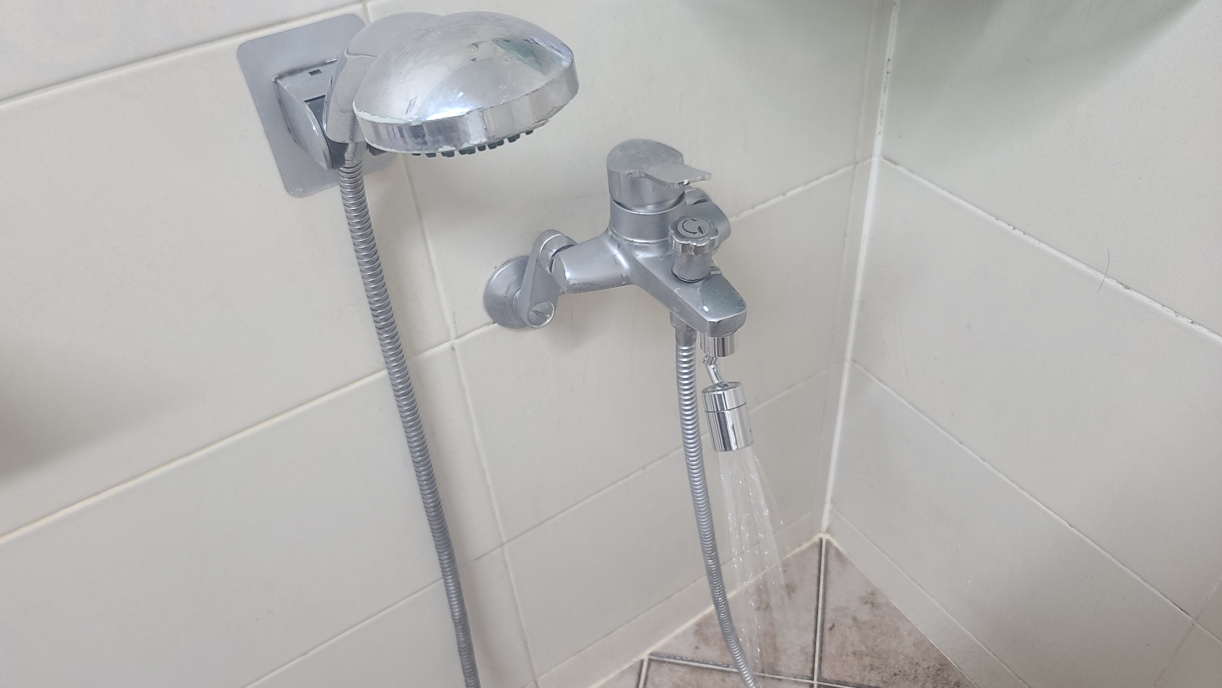 아래 사진과 같이 샤워기 꼭지에 설치하여 사용중입니다