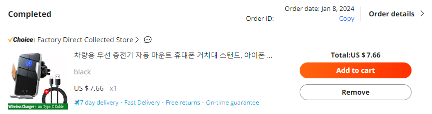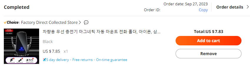 아래 스크린샷과 같이 7.83$에 주문하였습니다