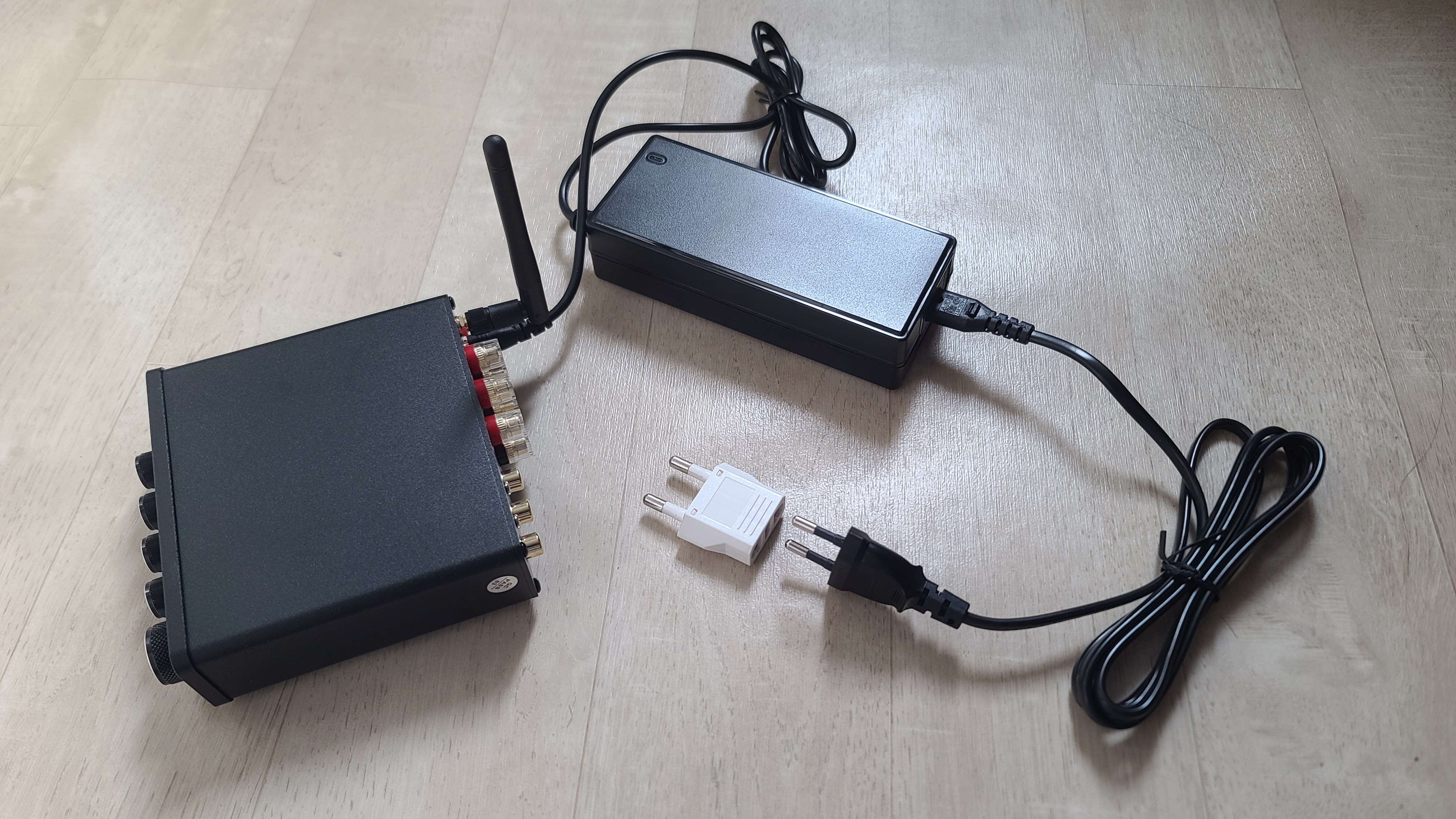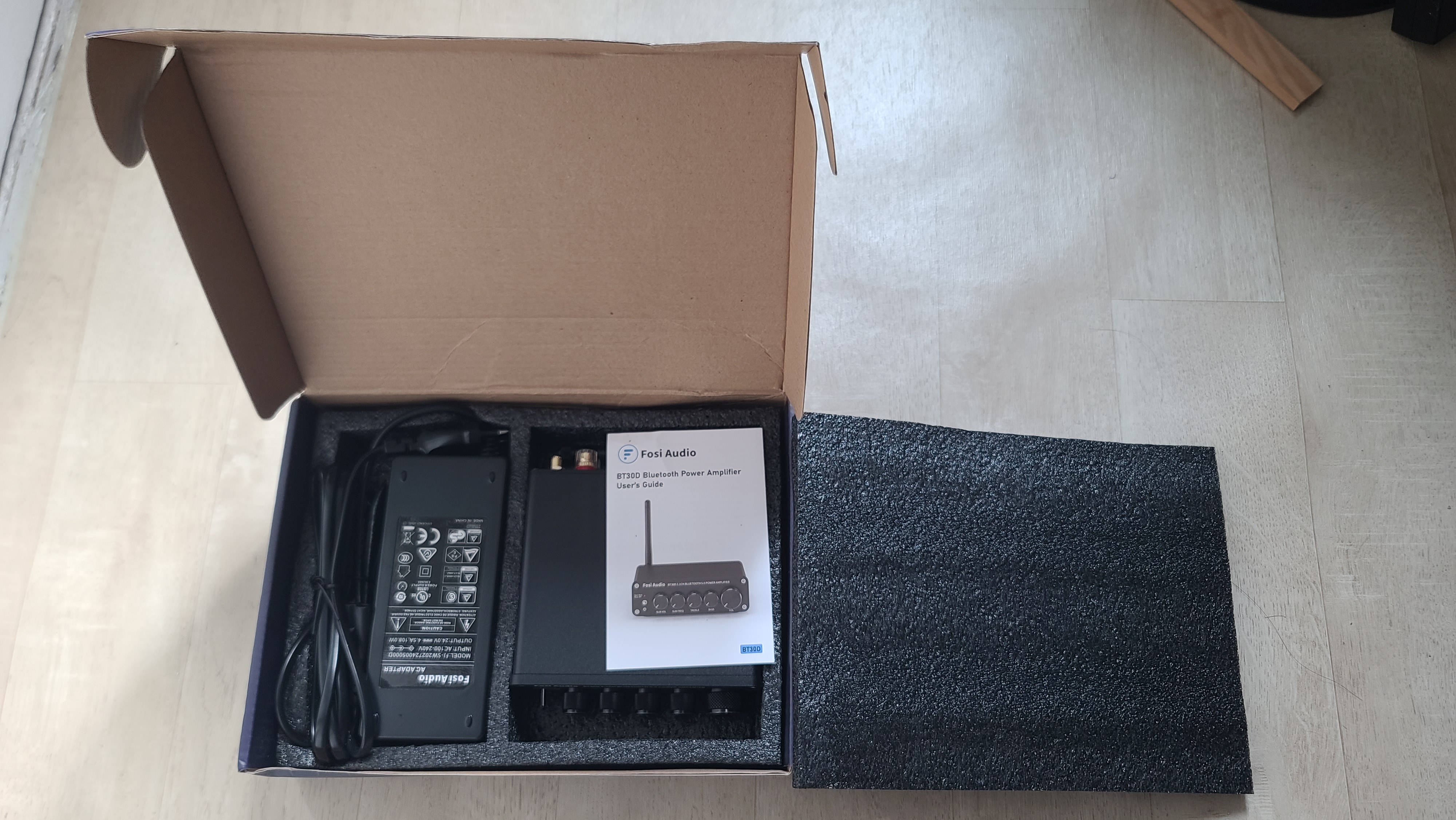 박스를 열어보니 아래 사진과 같이 앰프 본체와 파워, 설명서가 보입니다