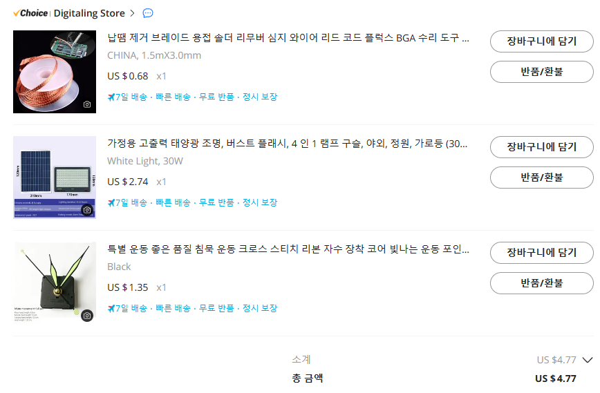다른 물품 2개를 포함하여 아래 스크린샷과 같이 구입하였습니다