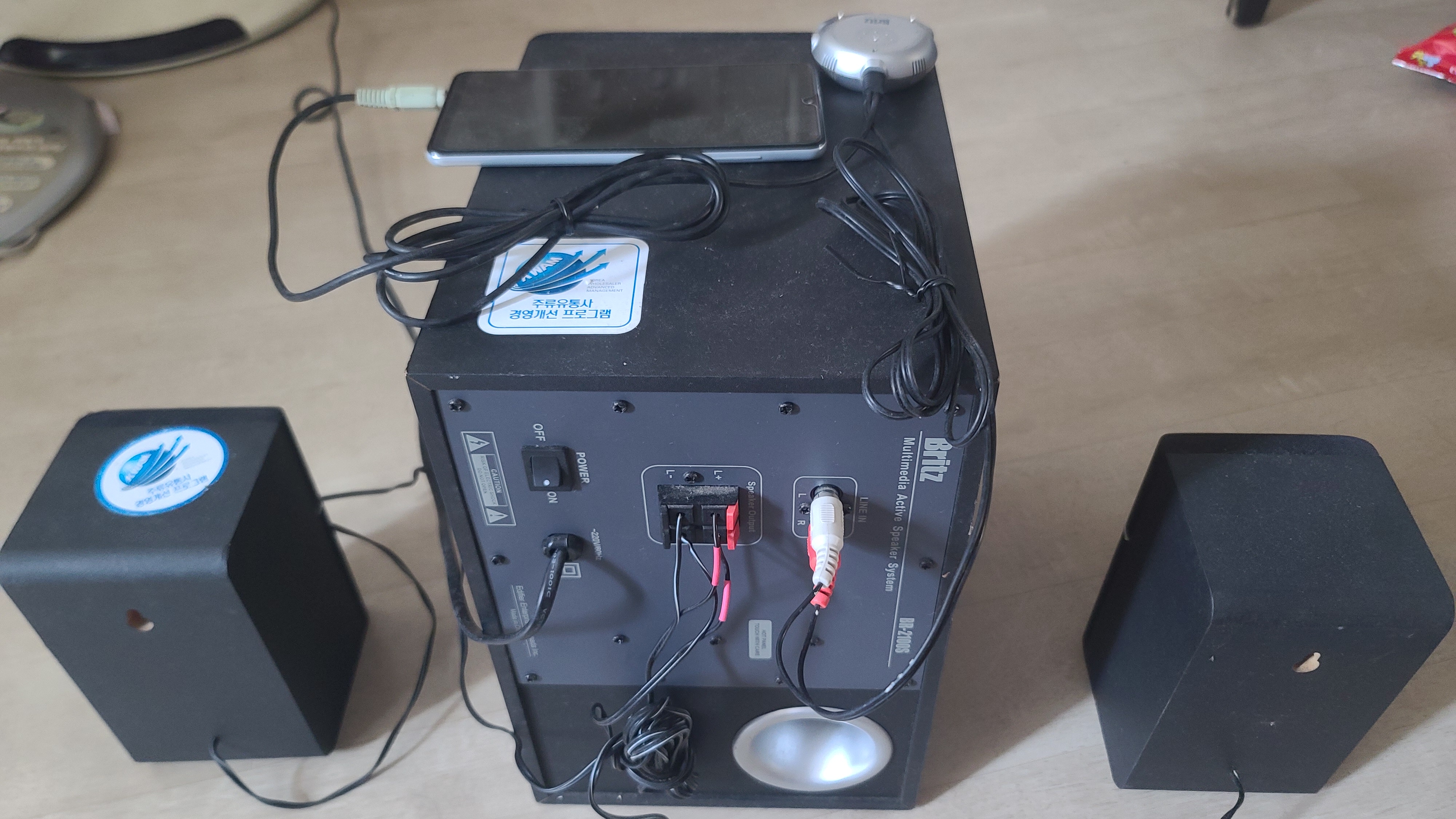 고장이 발생한 브리츠 2.1ch 스피커 BR-2100S를